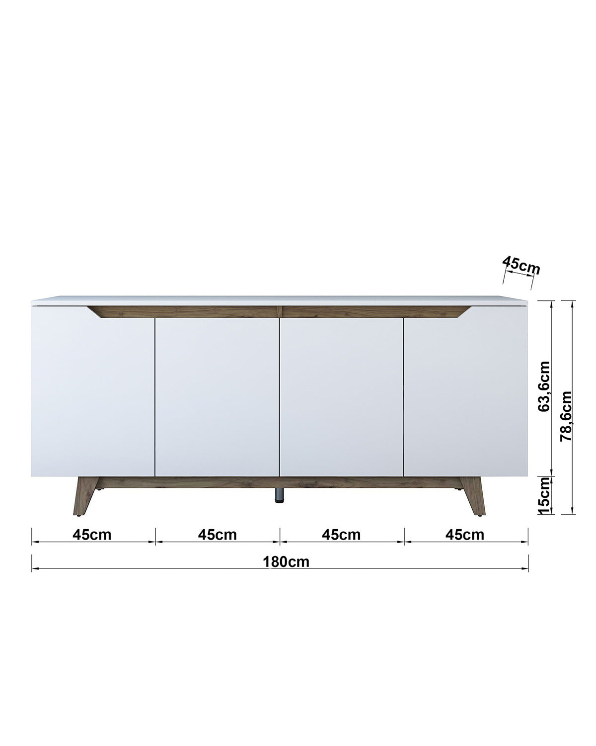 - El aparador Sharon combina el encanto del diseño contemporáneo con la calidez de los acabados naturales. Su estructura en blanco se equilibra con el contraste de la madera oscura, creando una pieza elegante y atemporal que encaja tanto en salones modernos como en comedores de estilo más clásico. Con cuatro puertas amplias y estantes interiores, ofrece un gran espacio de almacenamiento para organizar vajilla, textiles o documentos, manteniendo todo en orden y fuera de la vista. La estructura está realizada en tablero de partículas melaminizado, un material resistente y fácil de limpiar, mientras que las patas elevadas aportan ligereza visual y facilitan la limpieza del suelo. Gracias a su diseño de 180 cm de ancho y líneas depuradas, el aparador Sharon se convierte en un mueble versátil, ideal para aportar equilibrio y funcionalidad al hogar. Un mueble pensado para acompañar la vida diaria con estilo y practicidad.