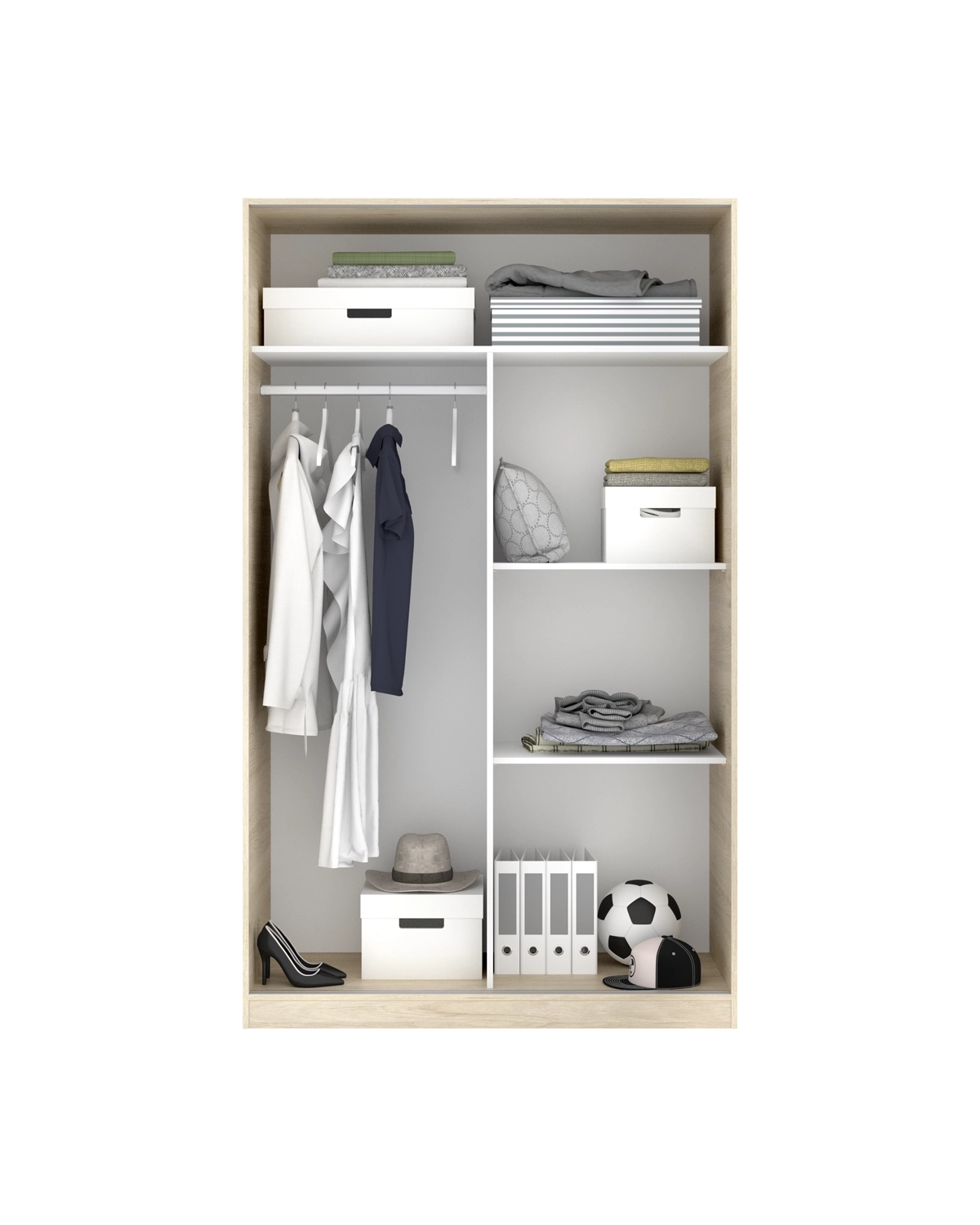 - El armario Slide de madera natural con puertas correderas combina diseño contemporáneo con el encanto cálido de los tonos naturales. Su sistema de apertura deslizante facilita el acceso al interior sin restar espacio, convirtiéndolo en una opción ideal para dormitorios funcionales. Dispone de barra metálica de colgar y estantes amplios, garantizando una organización práctica. Su estructura de tablero melaminizado resistente y los herrajes metálicos aportan durabilidad y estabilidad. Los tacos ABS antirrayaduras completan una construcción cuidada y robusta. Slide madera natural destaca por su estilo sereno y equilibrado, perfecto para quienes buscan un armario práctico, resistente y visualmente acogedor.