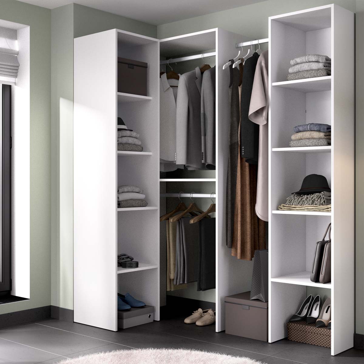 Armario vestidor rinconero regulable con dos columnas Suit