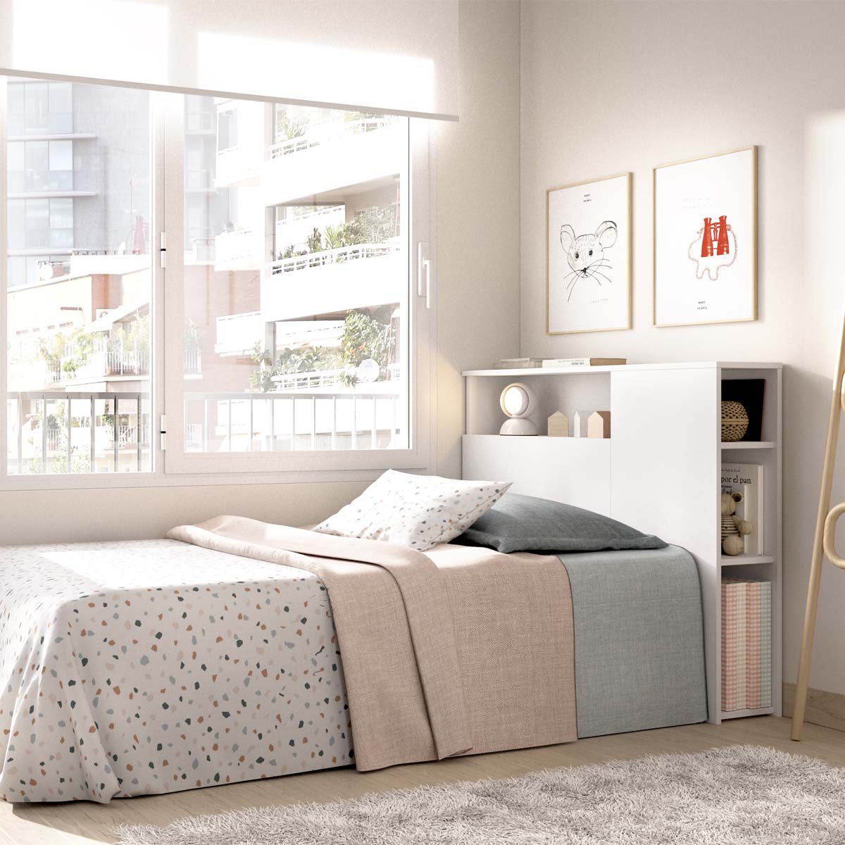 - El cabecero TEN en color blanco combina diseño minimalista y funcionalidad, ofreciendo una solución práctica para dormitorios juveniles o espacios reducidos. Su estructura de líneas limpias y acabado mate aporta luminosidad, mientras que su fondo de 23,4 cm permite incorporar huecos de almacenaje útiles sin ocupar demasiado espacio. Diseñado para camas de 90 cm, integra un módulo con espacio de apoyo y compartimentos ideales para guardar libros, el móvil, gafas o pequeños objetos que conviene tener a mano durante la noche. Este detalle convierte el cabecero en una pieza versátil que sustituye a la mesita tradicional, manteniendo todo ordenado y accesible. Fabricado en tablero de partículas melaminizado de 16 mm, combina ligereza y resistencia. Los tacos ABS antirrayaduras y quitarruidos protegen el suelo, y su mantenimiento es sencillo: basta con limpiar con un paño ligeramente humedecido y secar a continuación. Su diseño compacto y funcional lo convierte en un elemento esencial para dormitorios actuales, donde cada detalle suma en confort y organización.