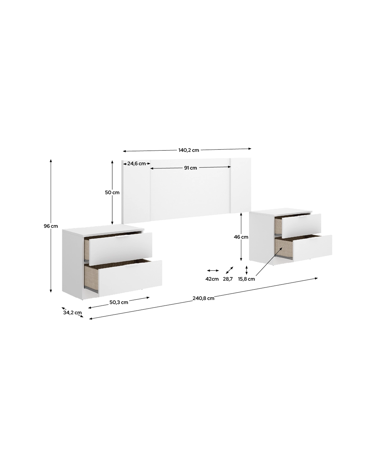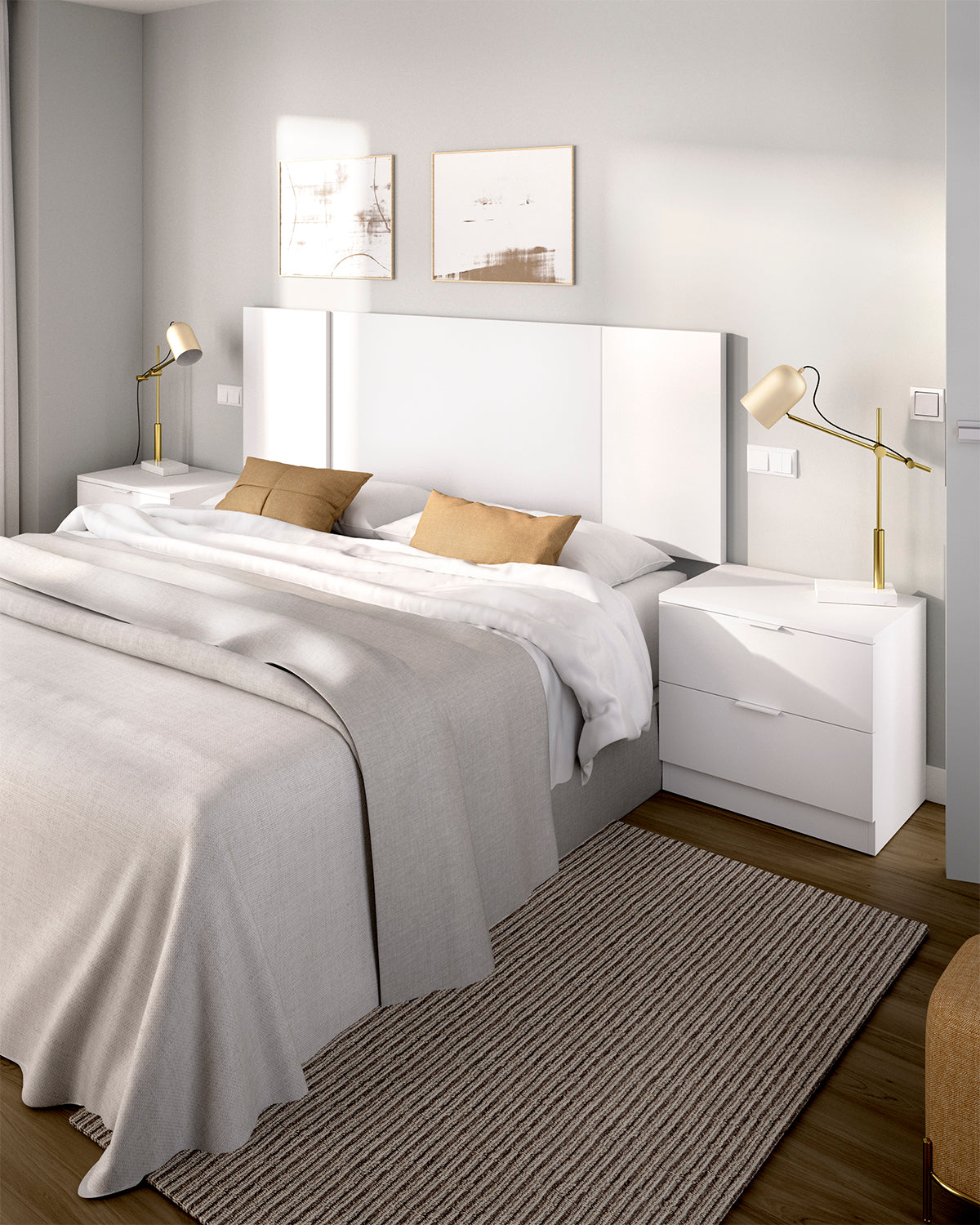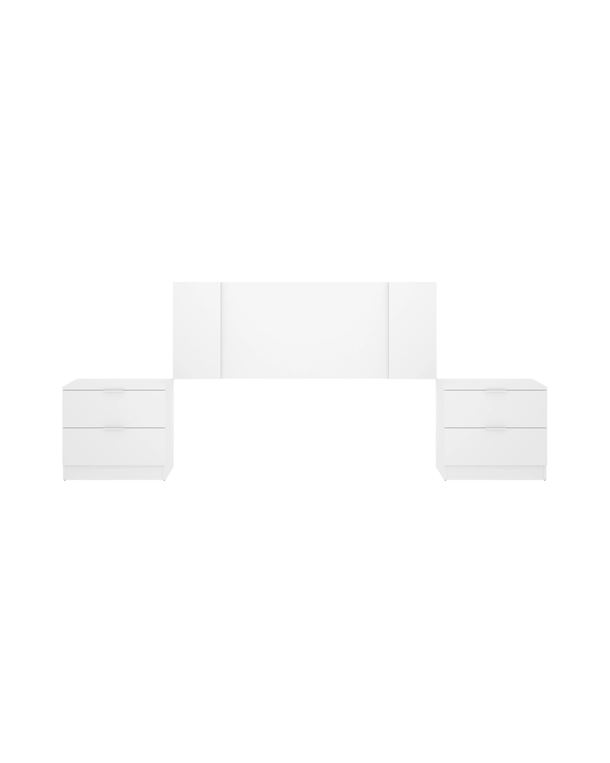 - El cabecero Flow con dos mesitas es una opción muy funcional y completa para dormitorios de matrimonio, diseñado para ofrecer almacenaje accesible a ambos lados de la cama. Sus dos mesillas integradas permiten mantener todo organizado, con espacio para iluminación, objetos personales o decoración. La estructura amplia y estable proporciona equilibrio visual y práctico, creando un conjunto moderno y uniforme. Su acabado en blanco aporta frescura y combina fácilmente con cualquier estilo decorativo. Cada mesita incorpora dos cajones con guías metálicas de suave deslizamiento, ideal para guardar lo que necesites tener cerca por la noche. Con materiales duraderos en tablero melaminizado, tiradores de aluminio y tacos ABS antirrayaduras, este cabecero está pensado para resistir el uso diario. Se fija a la pared para mayor seguridad y ofrece una solución completa que combina estética y funcionalidad en un solo mueble.
