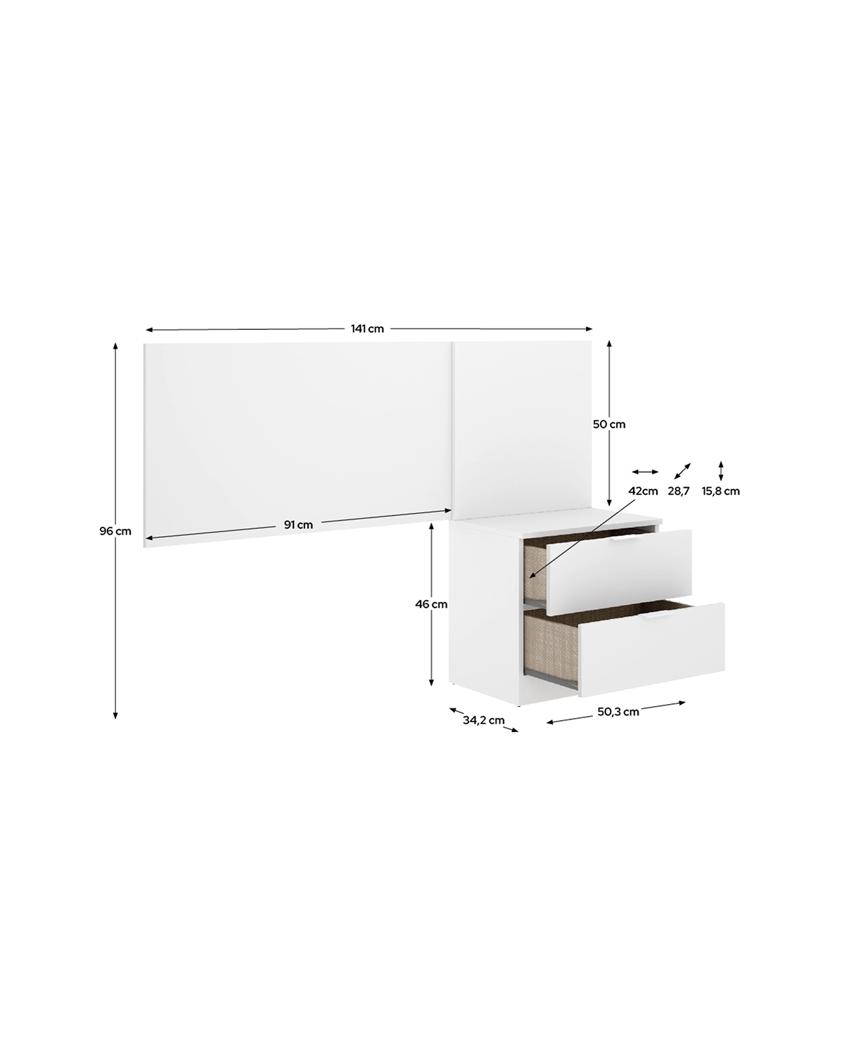 - El cabecero Flow está diseñado para aportar máxima funcionalidad en dormitorios individuales, integrando un espacio práctico y moderno con almacenaje siempre a mano. Su diseño compacto incluye una mesita de noche completamente integrada, perfecta para tener el móvil, lámpara o lo que necesites cerca mientras descansas. Una de sus mayores ventajas es su versatilidad, ya que la mesita puede colocarse tanto a la izquierda como a la derecha, adaptándose al diseño de tu habitación y a tus preferencias de uso. Con su estructura resistente y su acabado en blanco, aporta luminosidad y orden a cualquier espacio. Fabricado en tablero melaminizado y equipado con dos cajones con guías metálicas de suave deslizamiento, este cabecero garantiza durabilidad y comodidad. Además, incorpora tacos ABS antirrayaduras y su fijación a pared aporta estabilidad total. Una solución completa para dormitorios que necesitan optimizar cada centímetro.