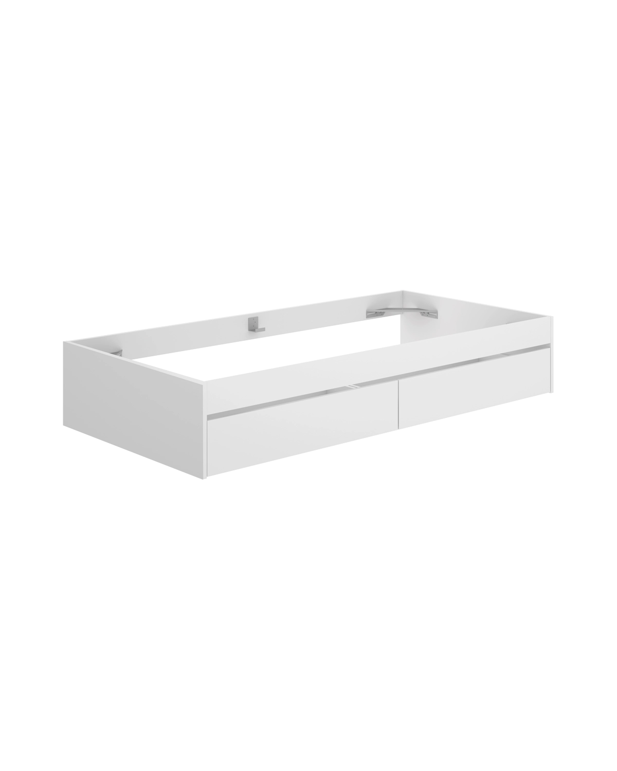 - La cama Lago en color blanco combina un diseño limpio con gran capacidad de almacenaje, ideal para dormitorios juveniles, de invitados o espacios reducidos. Su estructura de líneas rectas transmite sensación de orden y amplitud, mientras el acabado blanco potencia la luminosidad del entorno y facilita la integración con cualquier estilo decorativo, desde el nórdico hasta el contemporáneo. Equipada con dos amplios cajones inferiores, esta cama permite mantener la habitación siempre organizada, ofreciendo espacio extra para ropa de cama, juguetes o accesorios. Los cajones cuentan con ruedas unidireccionales y guías metálicas de suave deslizamiento que aseguran un uso cómodo y duradero. Fabricada en tablero de partículas melaminizado, la estructura ofrece resistencia y un mantenimiento sencillo, mientras los tacos ABS quitarruidos y antirrayaduras protegen el suelo y aportan estabilidad. Diseñada para colchones de 90 x 190 cm, esta cama representa una solución práctica y estética para quienes buscan aprovechar cada metro sin renunciar al diseño. Su acabado neutro y su funcionalidad la convierten en una pieza versátil que se adapta con facilidad a diferentes ambientes y edades.