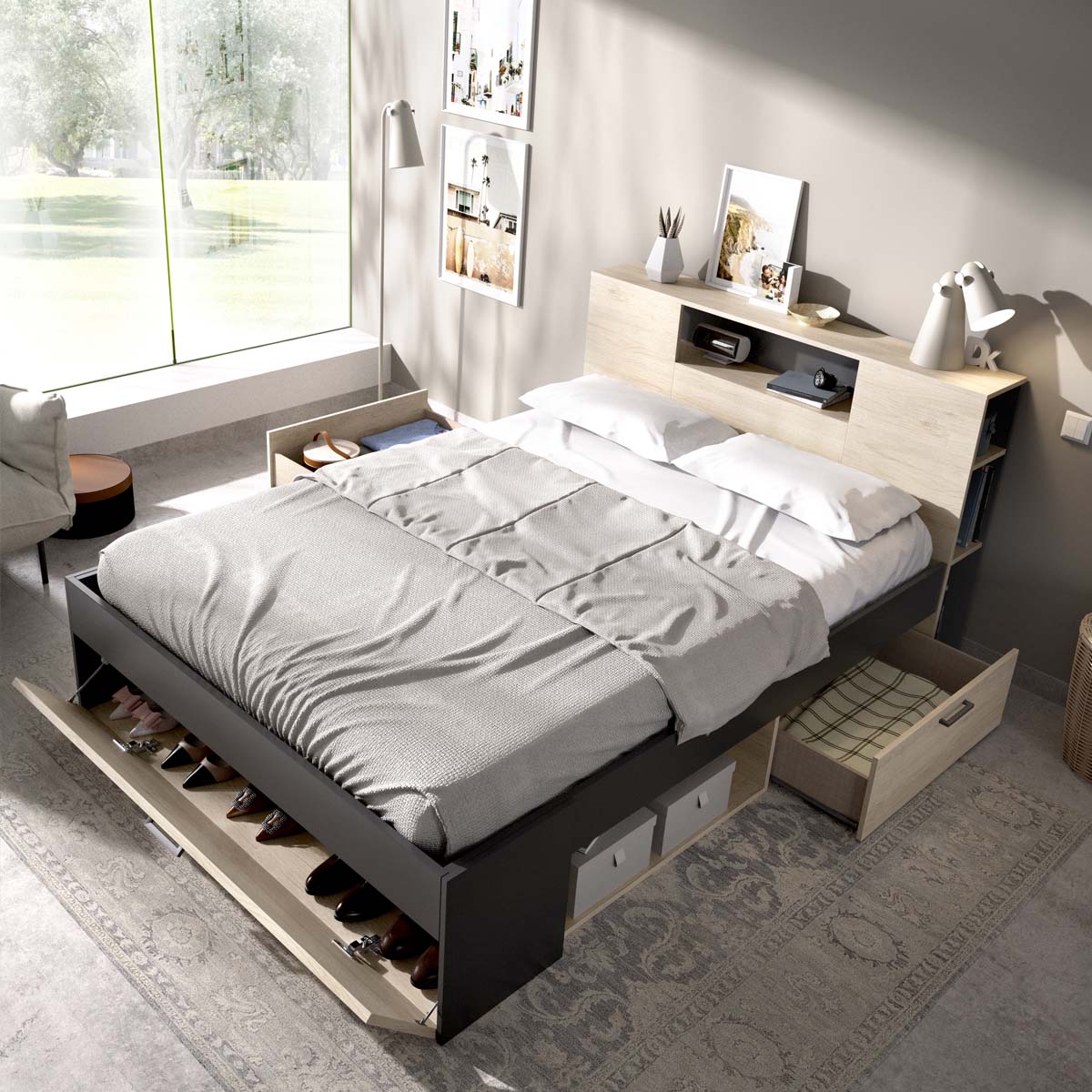 Cama matrimonio con cabecero y almacenaje Lanka