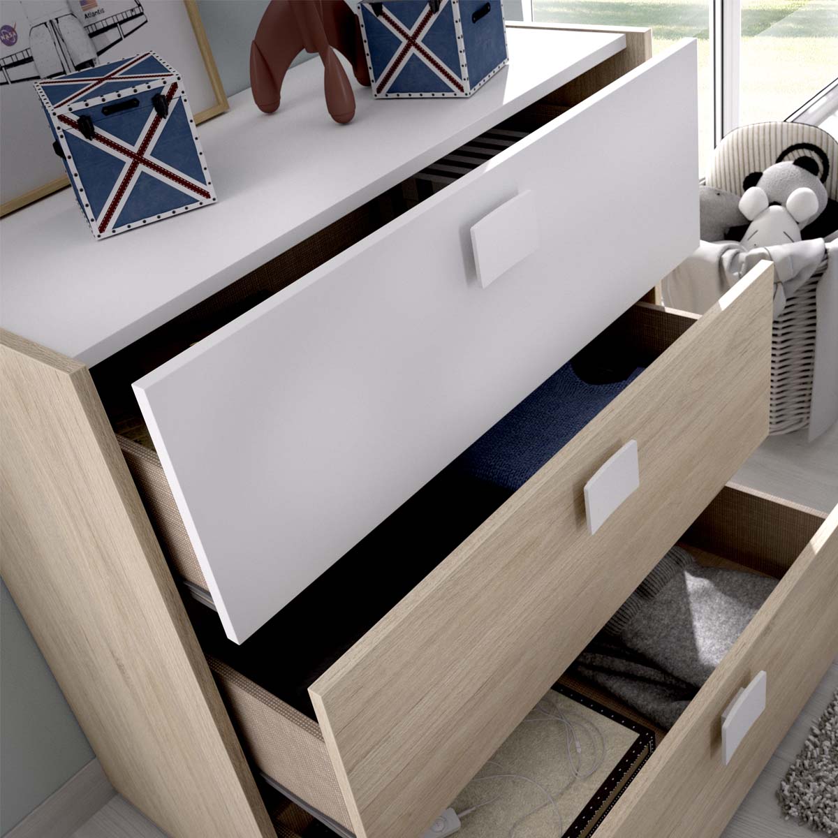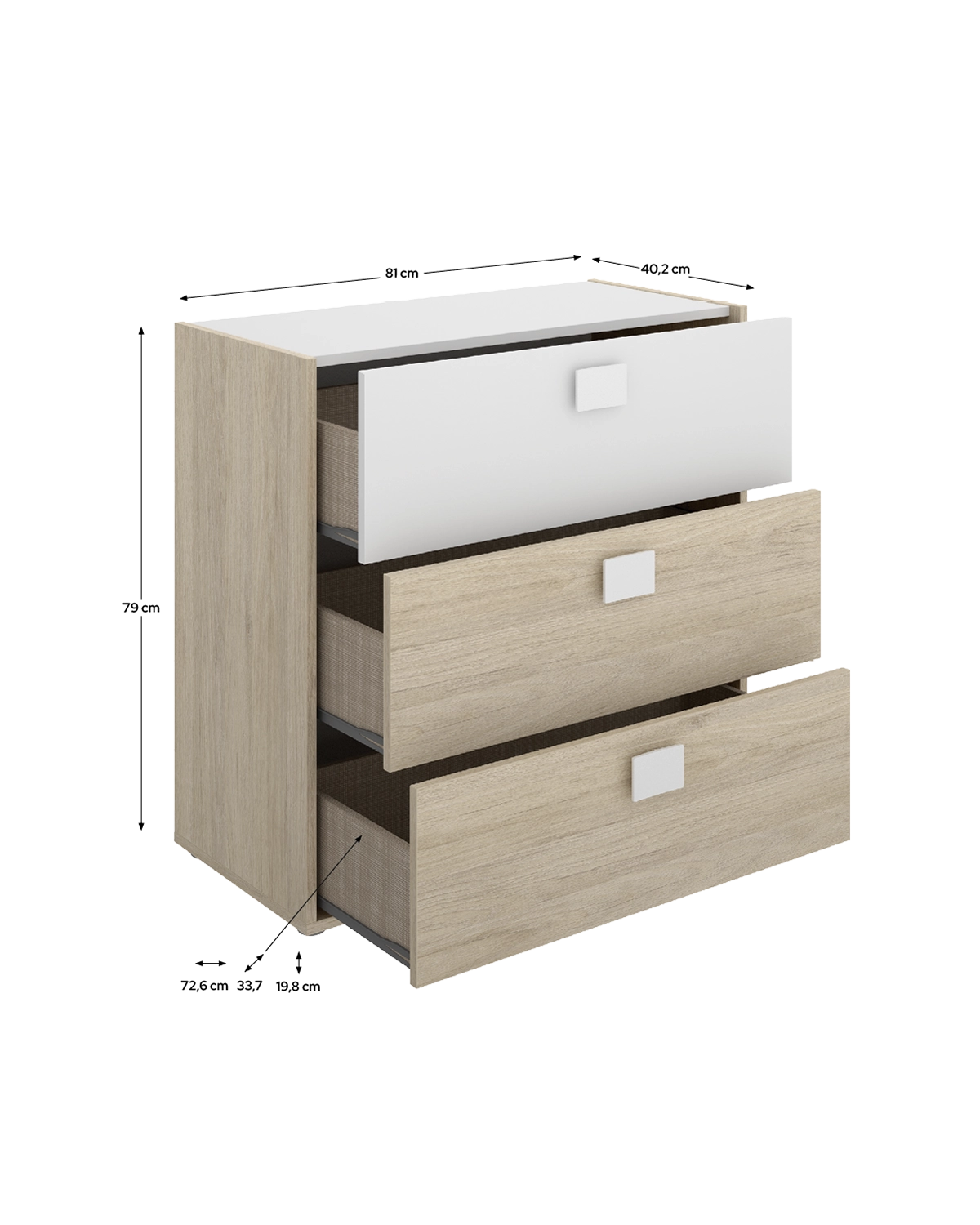 - Material tiradores: ABS acabado en blanco
