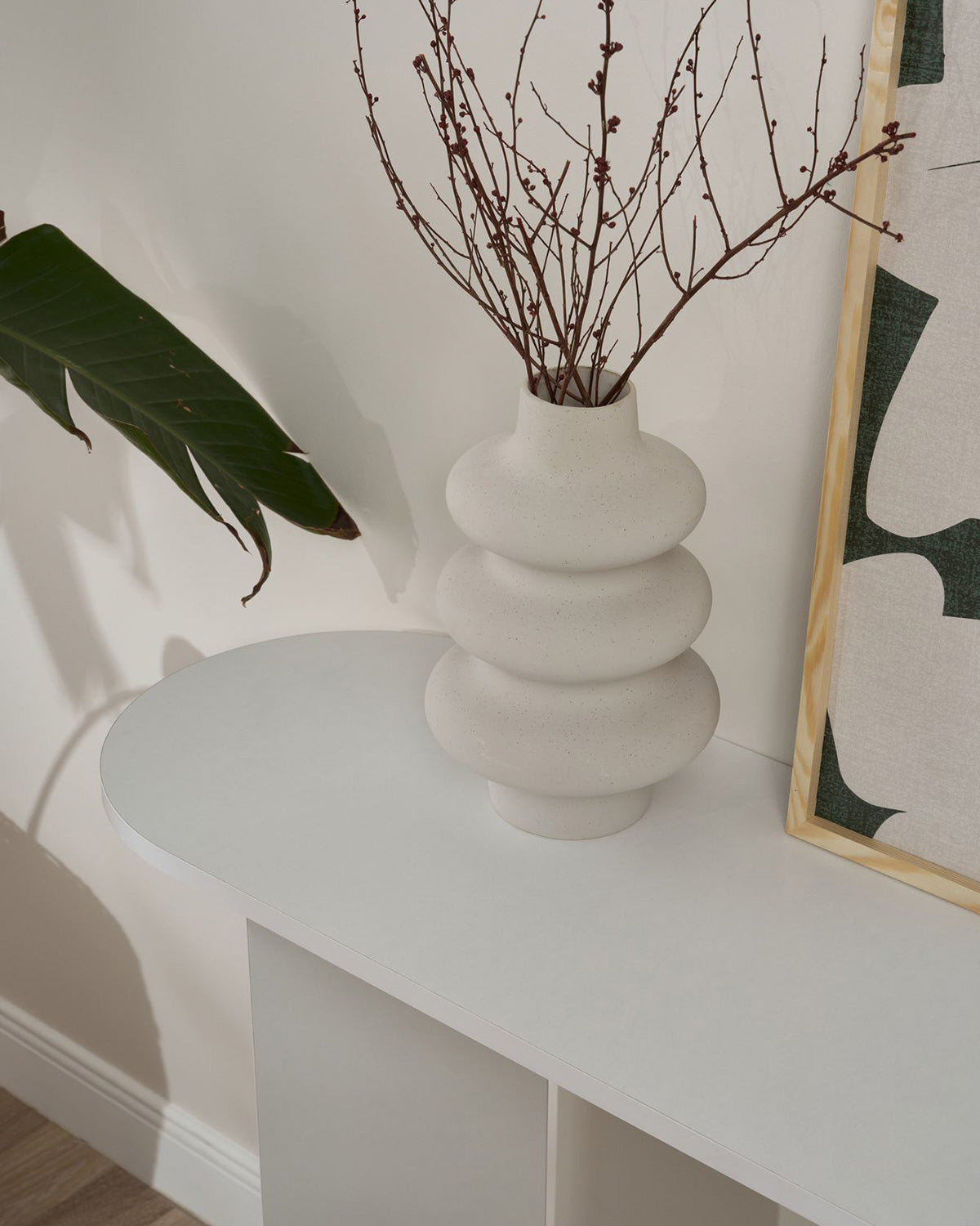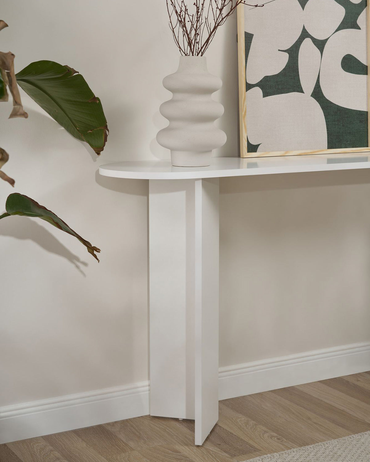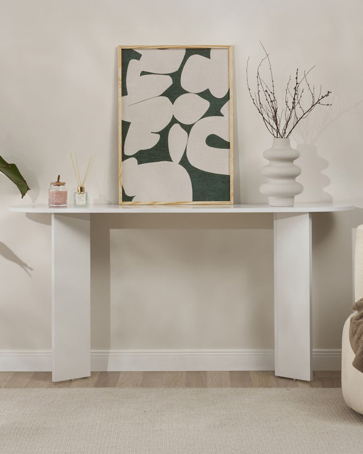 - La consola Elsie destaca por su diseño minimalista y funcional, pensado para aportar ligereza visual y orden en espacios de paso o salones contemporáneos. Su acabado en blanco potencia la luminosidad y transmite una sensación de amplitud, integrándose con facilidad en distintos estilos decorativos. Fabricada en tablero de partículas melaminizado, ofrece una superficie estable y resistente, ideal para colocar lámparas, espejos o elementos decorativos. Su estructura de líneas rectas refuerza su carácter versátil, convirtiéndola en una pieza práctica tanto para el recibidor como para el salón o el dormitorio. Con sus 150 cm de ancho y 75 cm de altura, la consola Elsie se convierte en un complemento perfecto para crear ambientes equilibrados, combinando funcionalidad, sencillez y un toque moderno en cada rincón del hogar.