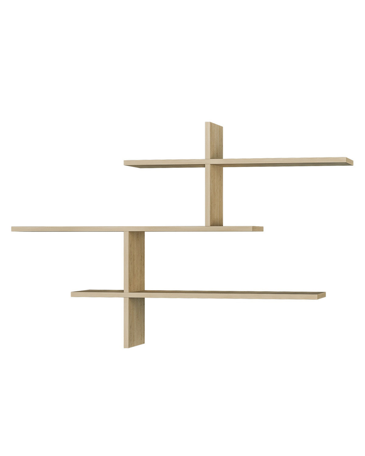 - La estantería Leta en acabado madera natural aporta calidez y equilibrio visual a cualquier ambiente. Su diseño colgante, sencillo y funcional, la convierte en una solución práctica para aprovechar el espacio vertical en salones, dormitorios o despachos. Fabricada en tablero de partículas melaminizado, ofrece una estructura sólida y resistente, capaz de soportar hasta 4 kg de peso. Su acabado en madera clara combina fácilmente con otros tonos neutros o con mobiliario blanco, logrando una decoración armónica y natural. Con unas dimensiones de 123 x 80,5 cm, esta estantería permite exhibir libros, marcos o piezas decorativas, aportando un toque cálido y funcional a la pared.