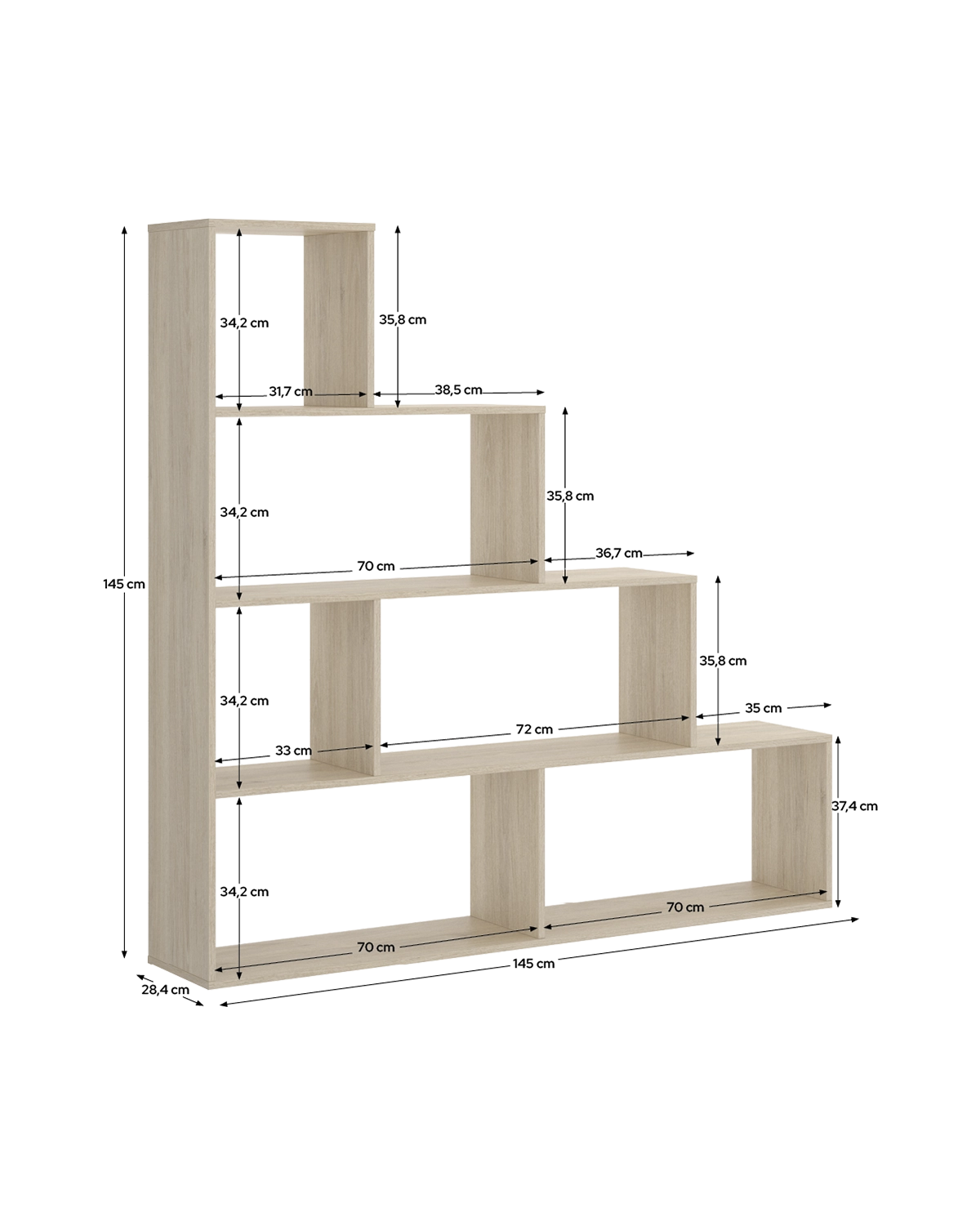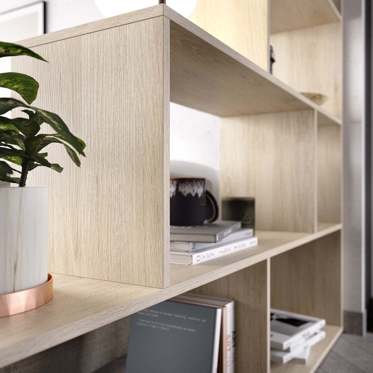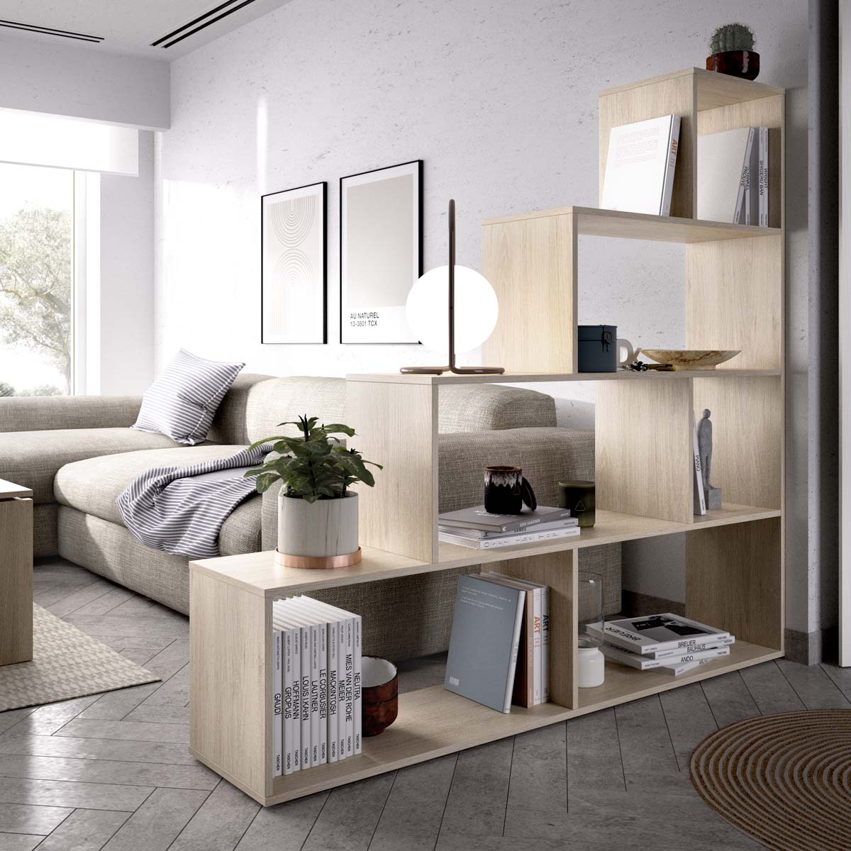 - La estantería TEN natural combina funcionalidad y calidez con un diseño equilibrado de cinco estantes fijos, ideal para crear espacios organizados y visualmente armoniosos. Su estructura cuadrada ofrece múltiples posibilidades de uso, tanto en salones como en despachos o dormitorios, adaptándose fácilmente a diferentes estilos decorativos. El acabado en roble natural aporta textura y naturalidad, evocando el aspecto de la madera sin renunciar a la practicidad. Su diseño abierto permite acceder con comodidad a los objetos y facilita la combinación con otros muebles, integrándose de forma orgánica en entornos contemporáneos o escandinavos. Fabricada en tablero de partículas melaminizado de 16 mm, ofrece una estructura robusta y estable. Incluye fijación a pared y montaje reversible, asegurando un uso seguro y versátil. De fácil limpieza y mantenimiento, mantiene su apariencia impecable con un simple paño humedecido y secado posterior.