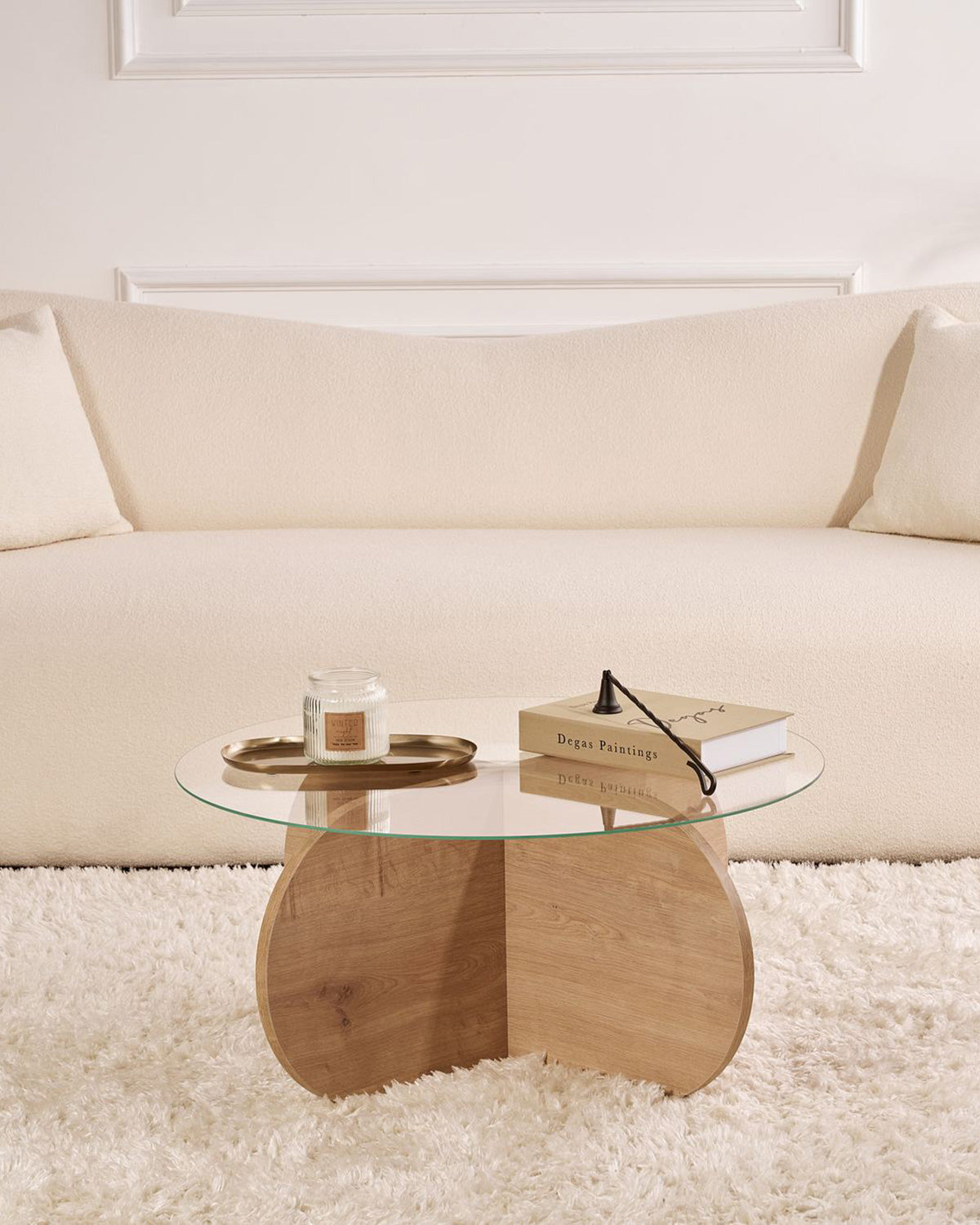 - La mesa de centro Stancey combina la transparencia del cristal templado con la calidez del acabado en madera natural, creando un equilibrio visual entre ligereza y estabilidad. Su forma redonda de 75 cm aporta suavidad y un aire contemporáneo al salón. El sobre de cristal deja ver la estructura inferior, aportando profundidad y luminosidad al conjunto. Fabricada en tablero melaminizado, es resistente y fácil de mantener. Una mesa versátil y elegante, ideal para salones modernos o espacios de inspiración escandinava.