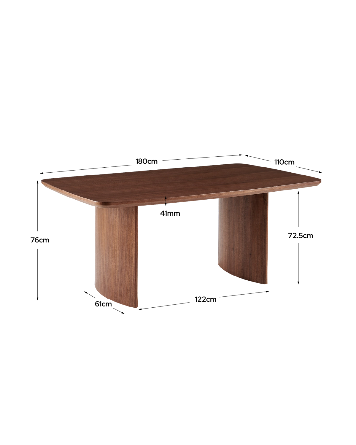 - Mesa de comedor ovalada Erin Madera oscura apuesta por la elegancia de las formas ovaladas, que suavizan el espacio y favorecen la interacción entre comensales. El acabado en madera oscura aporta un aire cálido y atemporal, fácil de integrar en distintos estilos decorativos. El sobre en mdf transmite solidez y un aspecto natural, las patas en mdf aportan estabilidad y refuerzan la estética cálida y su capacidad para 6 comensales la convierte en el centro de reuniones familiares y encuentros cotidianos. Una mesa ovalada que combina armonía y funcionalidad, ideal para comedores donde se busca equilibrio entre estética y confort.