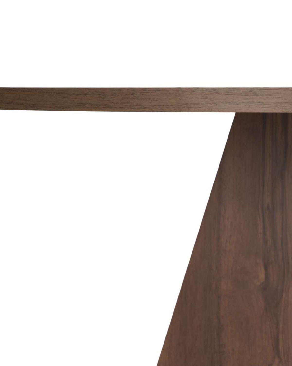 - Con un acabado en madera oscura, la mesa Bethany aporta profundidad y sofisticación al espacio. Su sobre circular de 120 cm de diámetro favorece una disposición equilibrada y funcional, ideal para disfrutar de comidas en grupo o reuniones familiares. El diseño destaca por su estructura robusta y su acabado cálido, fabricado en tablero melaminizado para ofrecer resistencia y una textura agradable al tacto. Su tono oscuro añade elegancia y combina a la perfección con decoraciones modernas o clásicas. Una mesa que une diseño, solidez y confort, pensada para convertirse en el punto central del comedor.