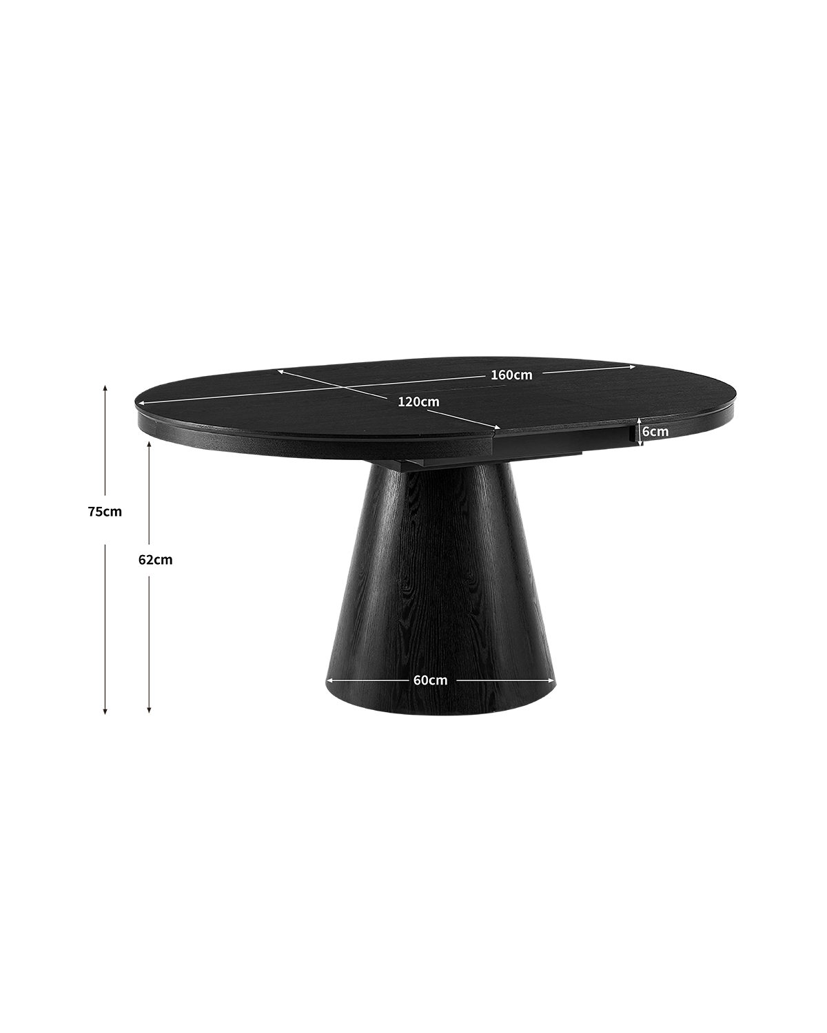 - Mesa de comedor redonda extensible Cassie Negro une la practicidad de un sistema extensible con la armonía de la forma redonda, favoreciendo la convivencia en espacios de comedor. El acabado en negro aporta un aire cálido y versátil, adaptable a distintos estilos decorativos. El sobre en mdf asegura resistencia y un aspecto natural, las patas en mdf mantienen la estabilidad con un diseño sobrio y su capacidad para Hasta 6 comensales se ajusta a necesidades diarias y encuentros especiales. Una mesa redonda extensible que combina elegancia y funcionalidad, perfecta para quienes buscan optimizar el espacio sin renunciar al estilo.