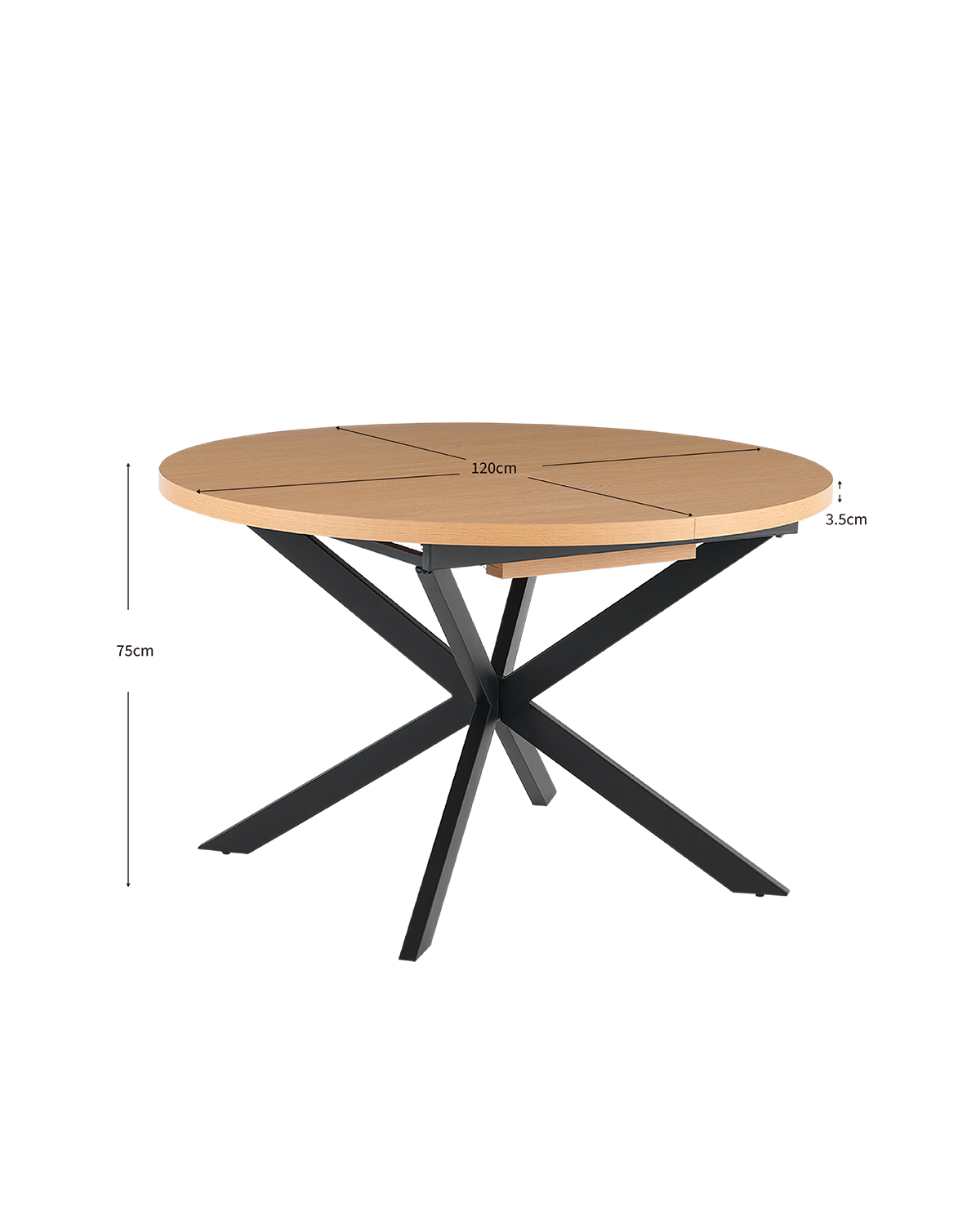 - La mesa Elvia combina estética y funcionalidad en un formato redondo extensible pensado para el día a día. Parte de un diámetro de 120 cm y se extiende hasta 160 cm, ofreciendo una superficie versátil que se adapta a comidas familiares o encuentros más amplios sin perder armonía visual. Su sistema de extensión tipo mariposa destaca por su comodidad, ya que permite ampliar la mesa de forma fluida e integrada. Los suplementos se guardan en el interior mediante travesaños de apoyo, asegurando un uso práctico y una estructura siempre ordenada cuando no está extendida. El tablero de MDF con un grosor de 33 mm aporta robustez y una sensación de calidad. Las patas de metal garantizan estabilidad y resistencia en el uso diario. Pensada para interiores, esta mesa es ideal para hasta seis comensales, combinando comodidad, diseño y funcionalidad.