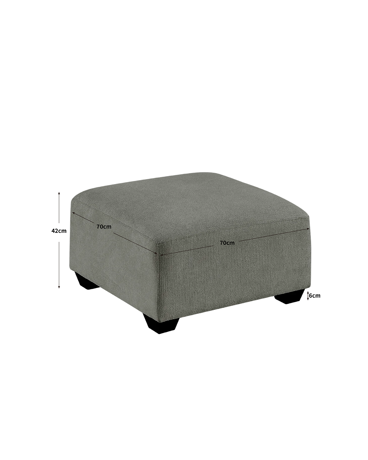 - Módulo de sofá Liza reposapiés/puf Verde combina confort y diseño atemporal, pensado para integrarse en diferentes estilos de salón. El acabado en verde aporta calidez y versatilidad, mientras que su formato de 1 plazas lo convierte en el centro de reuniones familiares o de momentos de descanso. Su carácter práctico lo convierte en una pieza imprescindible para el hogar. Tapizado en poliéster, ofrece una superficie agradable al tacto y fácil de mantener, la estructura en tela y madera refuerza la resistencia y la durabilidad, los asientos mullidos proporcionan la comodidad necesaria para el día a día y las patas de plástico aseguran estabilidad y un estilo natural. Una propuesta versátil que encaja en ambientes modernos, clásicos o nórdicos, aportando equilibrio estético y funcionalidad a cualquier espacio.