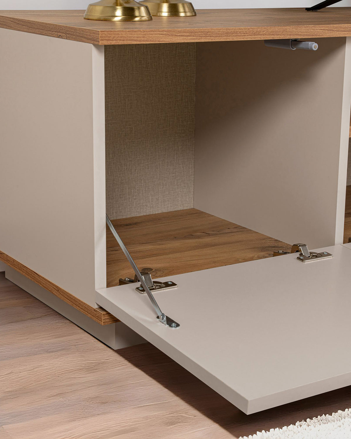 Color: Beige y madera natural