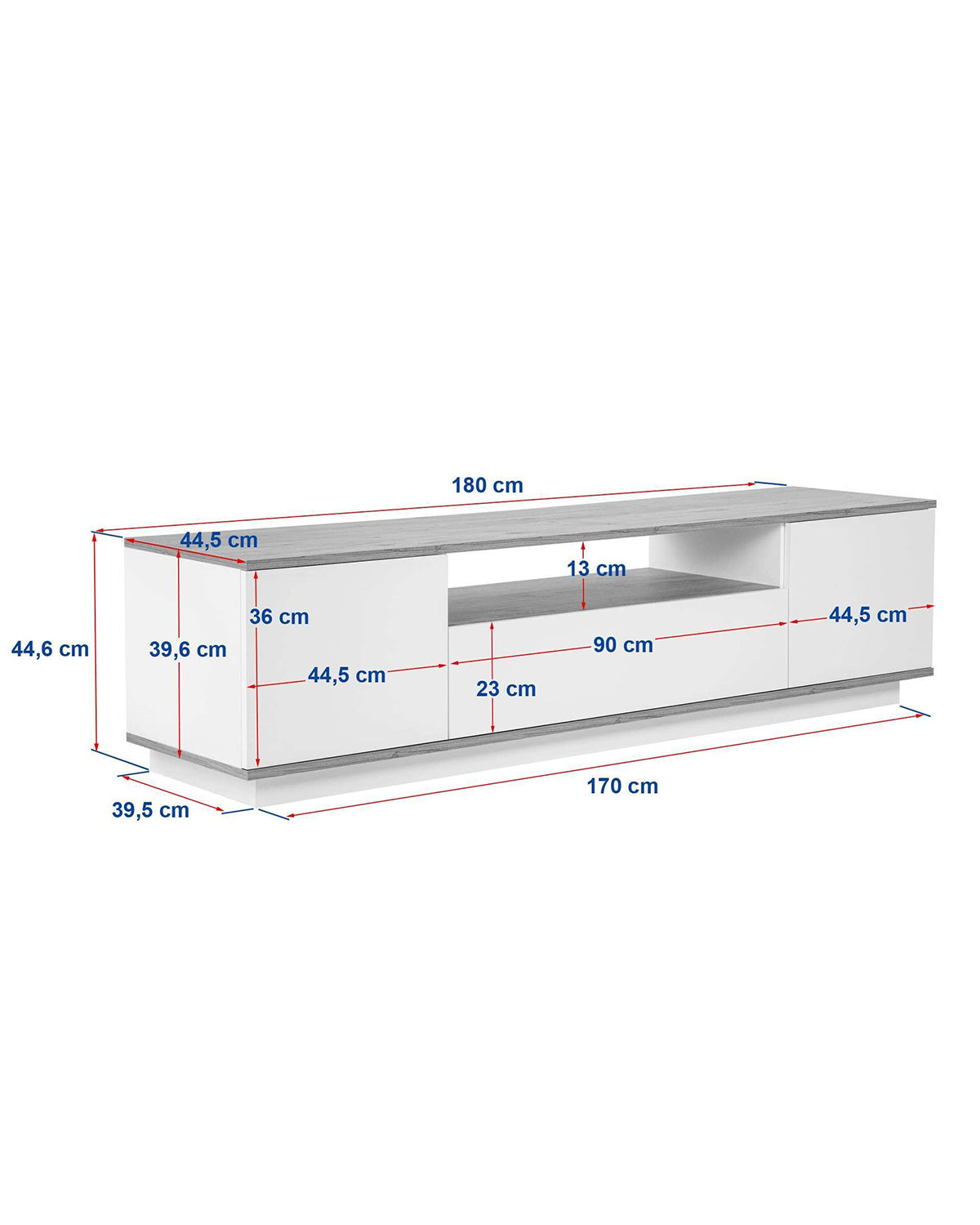 Altura: 44,6 cm Ancho: 180 cm