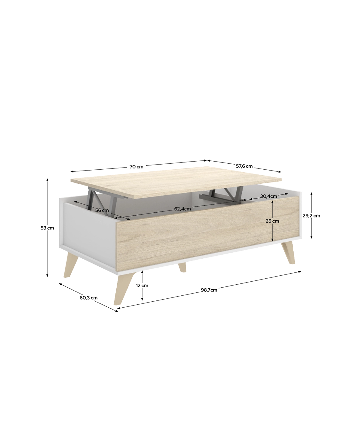 - Alto: Estante: 35 cm | Mueble TV: 51 cm | Mesa centro: 41 cm | Mesa comedor: 77 cm