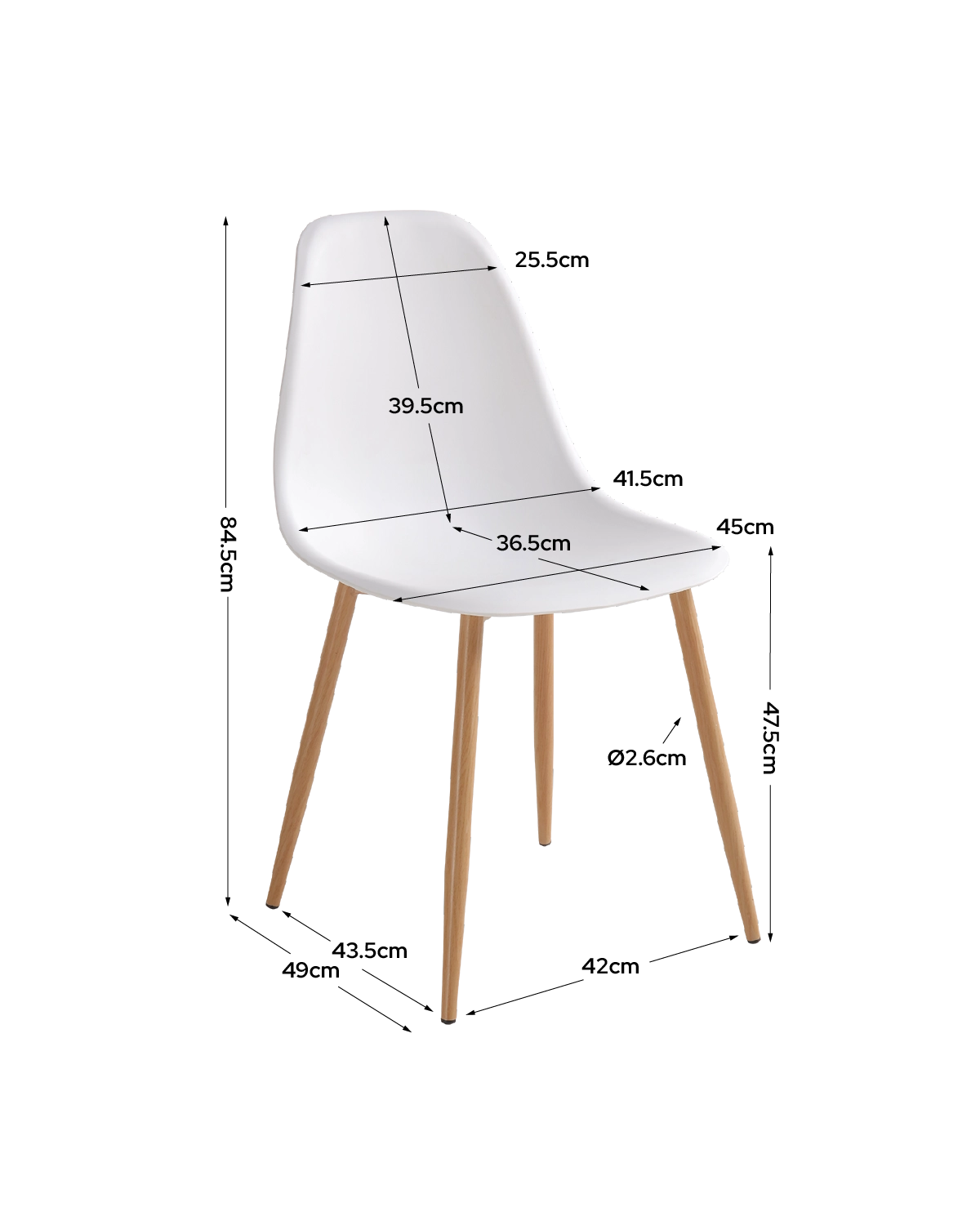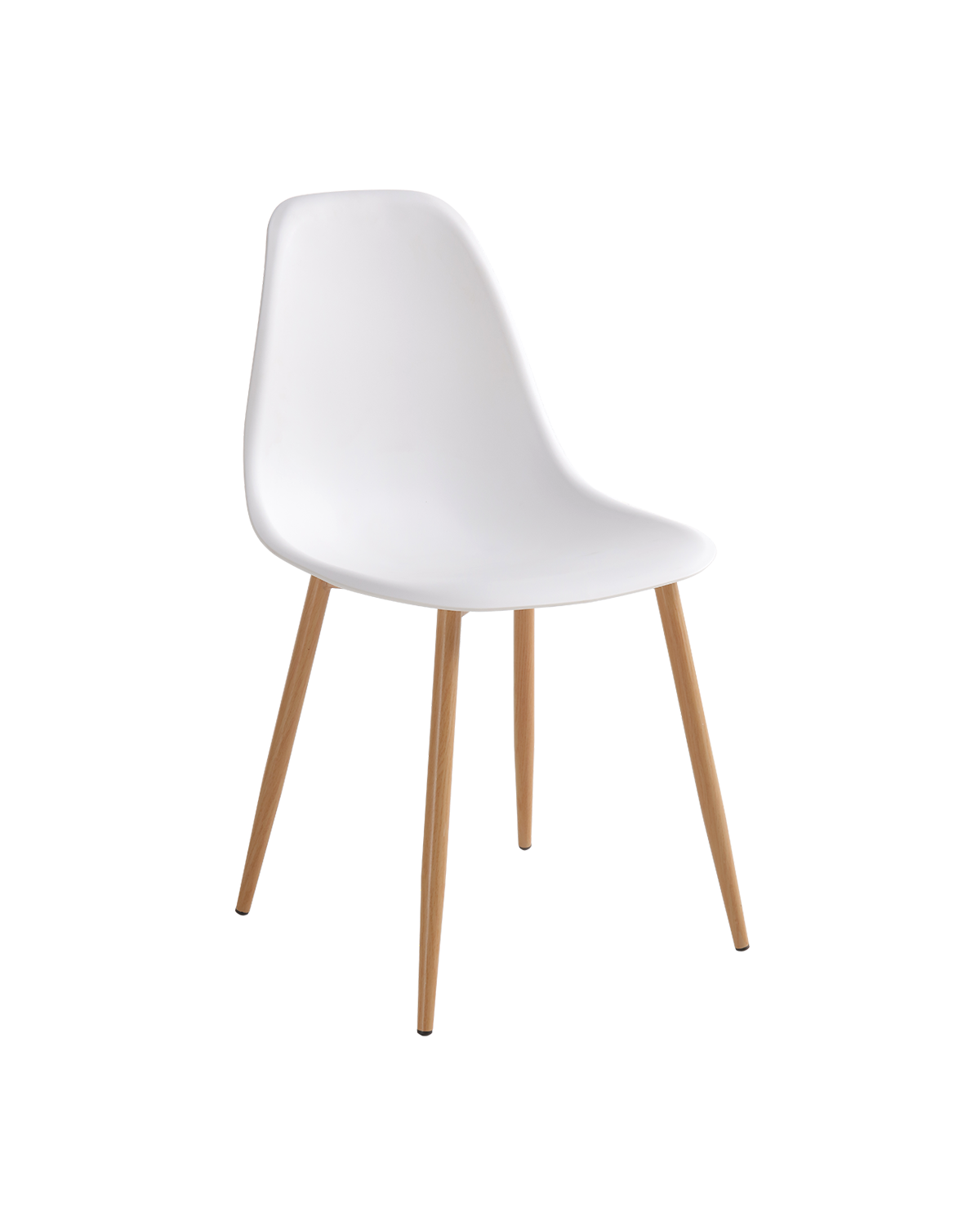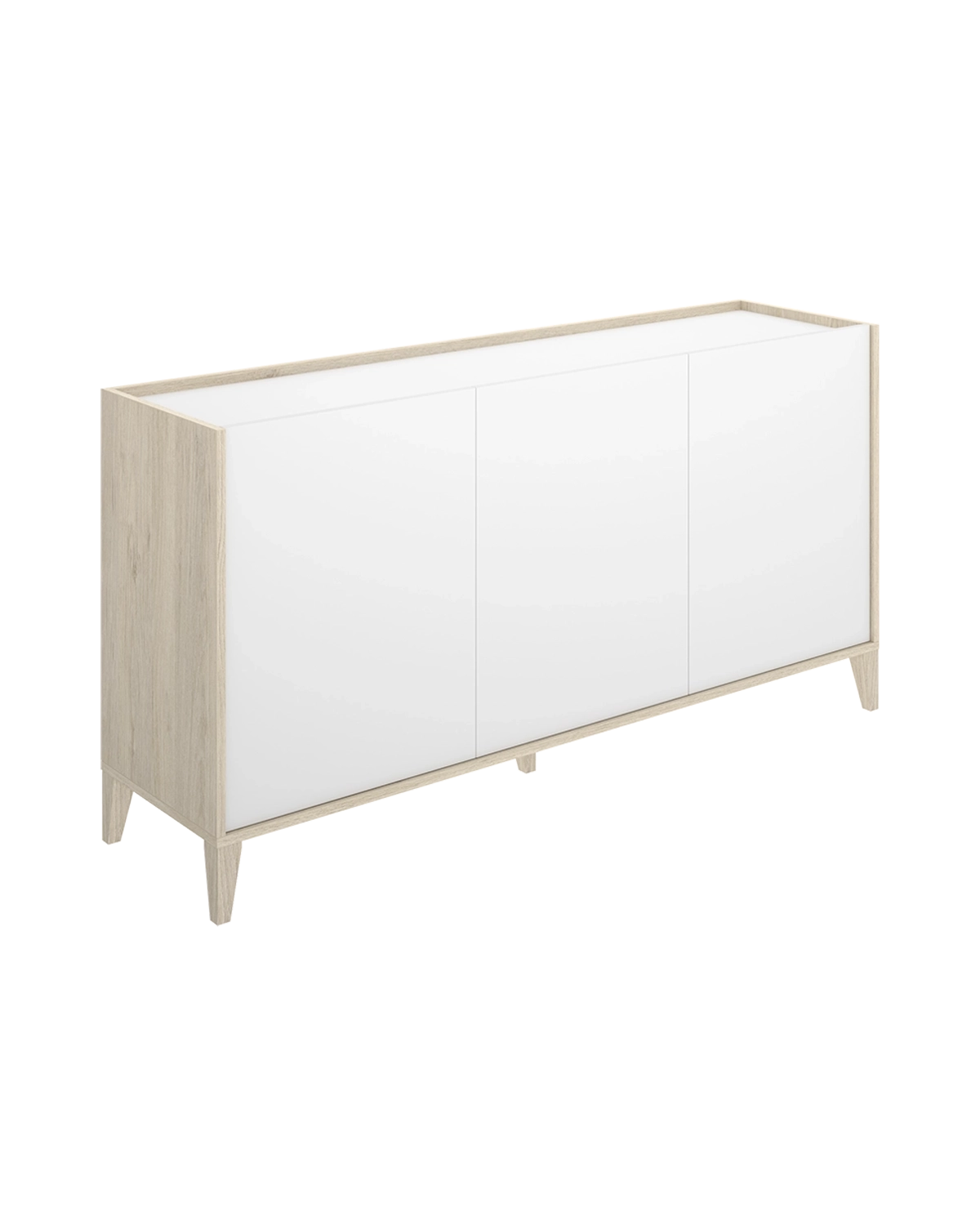 - Color: Mueble TV y aparador: Blanco y madera natural | Mesa centro y mesa comedor: Madera natural| Sillas: Blanco y madera natural