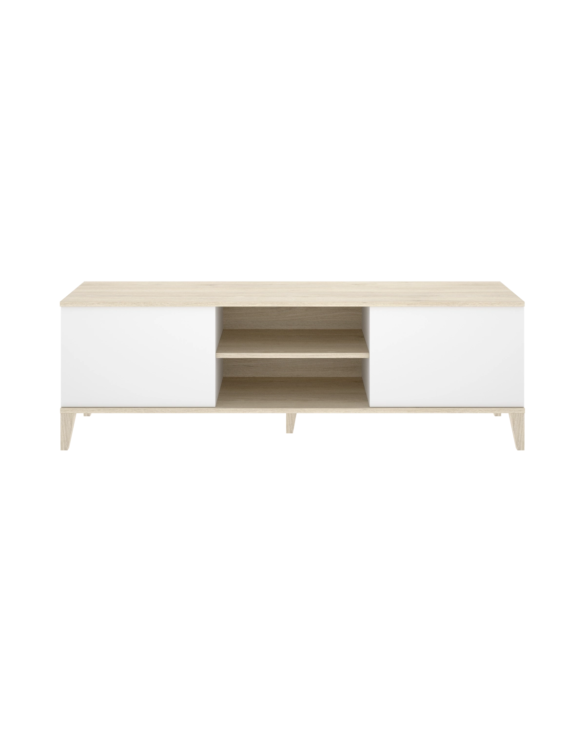 - El Pack ahorro comedor Boston está compuesto por ocho piezas pensadas para amueblar salón y comedor de forma completa y coordinada. Incluye mueble TV, aparador, mesa de centro elevable, mesa de comedor extensible y cuatro sillas, todos en una combinación de blanco y madera natural que aporta luminosidad y equilibrio visual al espacio. La zona de salón ofrece soluciones funcionales de almacenaje y uso diario. El mueble TV Boston cuenta con dos puertas y patas elevadas que facilitan la limpieza, mientras que el aparador Bari añade capacidad interior gracias a sus estantes regulables. La mesa de centro elevable incorpora un compartimento oculto, ideal para mantener el orden sin renunciar a la comodidad. El comedor se completa con la mesa extensible Dine, que pasa de 140 a 190 cm para adaptarse a distintas ocasiones, y cuatro sillas Lena de polipropileno y metal, resistentes y fáciles de mantener. Un pack versátil pensado para hogares que buscan una solución integral, práctica y de estética nórdica.
