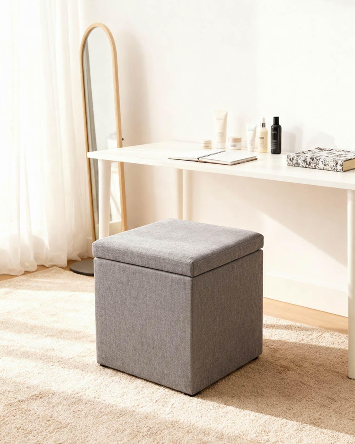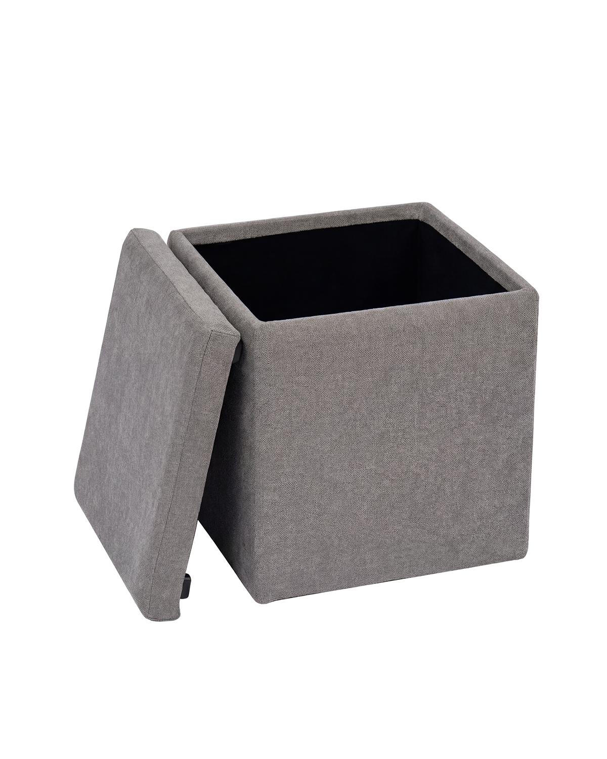 - El puff con almacenaje Jayne en color gris combina funcionalidad y diseño en una pieza compacta y versátil. Su formato permite utilizarlo como asiento auxiliar, reposapiés o apoyo ocasional, al mismo tiempo que ofrece un práctico espacio interior para guardar mantas, cojines u otros objetos del día a día. Tapizado en tejido de tacto agradable, incorpora una espuma con densidad de 23 kg/m³ que proporciona una sentada cómoda y firme. Su diseño sencillo y su color gris aportan una estética moderna y fácil de integrar en salones, dormitorios o zonas de descanso. Una solución funcional para mantener el orden sin renunciar al estilo, ideal para espacios que buscan practicidad y un diseño equilibrado.