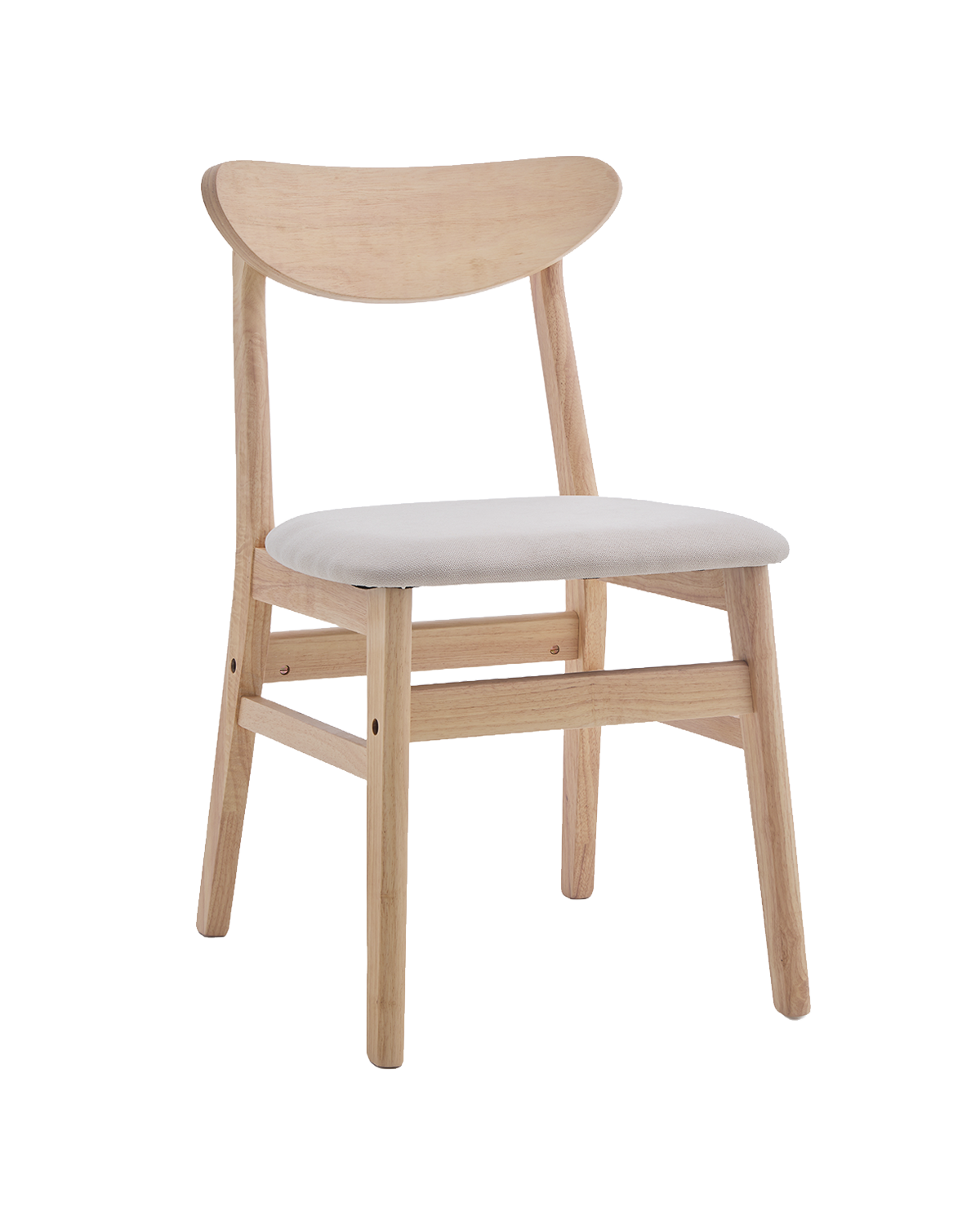 Silla en madera en color natural con asiento tapizado en tela beige