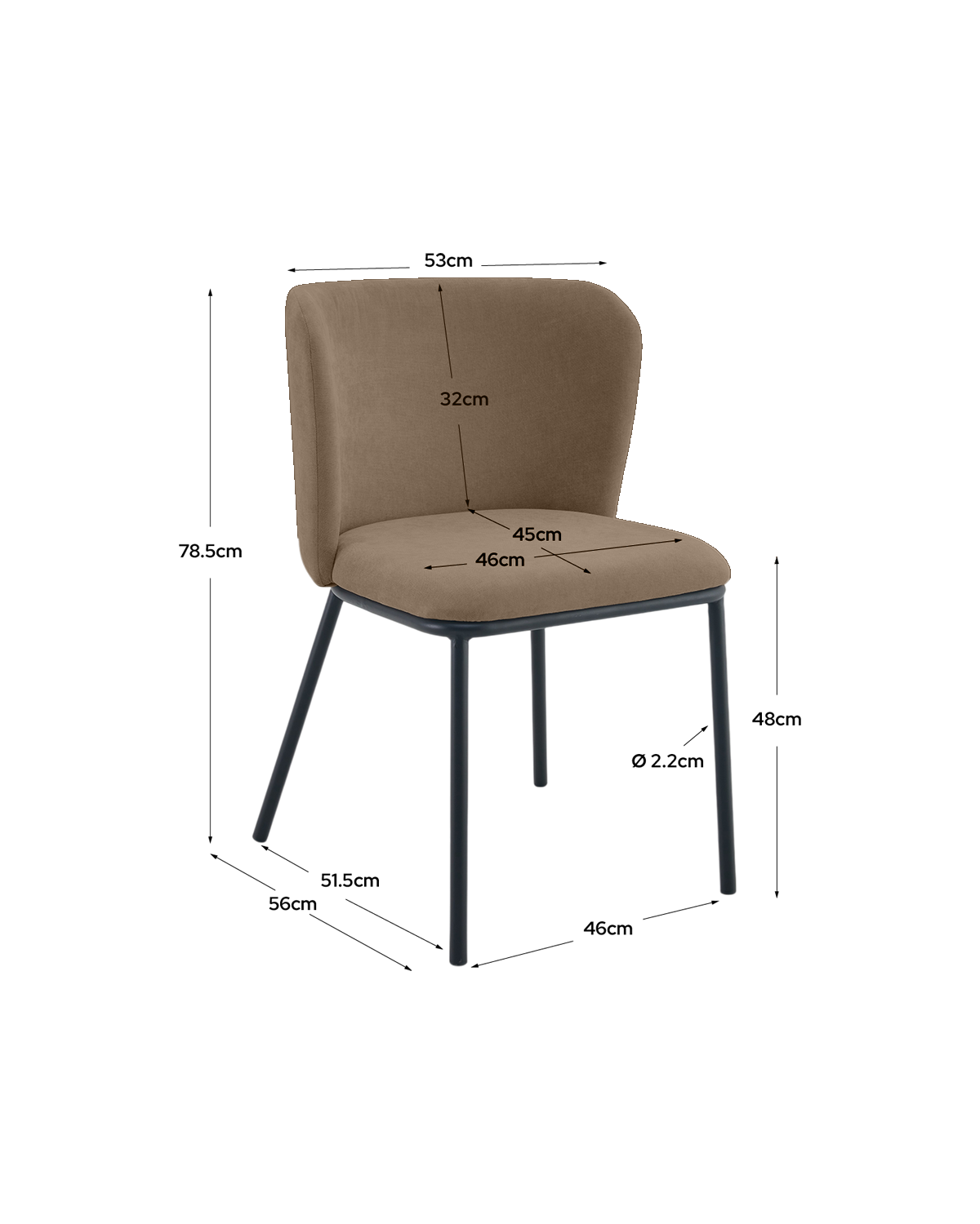 - Silla comedor tapizada en tela Glenna Marrón combina diseño funcional y estética actual, convirtiéndose en una opción práctica para el comedor o la cocina. El acabado en marrón refuerza la sensación de luminosidad y versatilidad en la estancia. Su carácter atemporal permite integrarla en distintos conjuntos de comedor o utilizarla como asiento auxiliar en otras estancias. Pensada para el día a día, combina confort y facilidad de limpieza sin perder presencia decorativa. Fabricada en tela, ofrece resistencia y un mantenimiento sencillo, el asiento ergonómico asegura comodidad durante las comidas, la base en metal garantiza estabilidad y aporta un toque contemporáneo y la estructura soporta hasta 120 kg, lo que la convierte en una pieza duradera. Un diseño versátil que se integra en ambientes modernos, nórdicos o minimalistas, ideal para completar el espacio con estilo y practicidad.