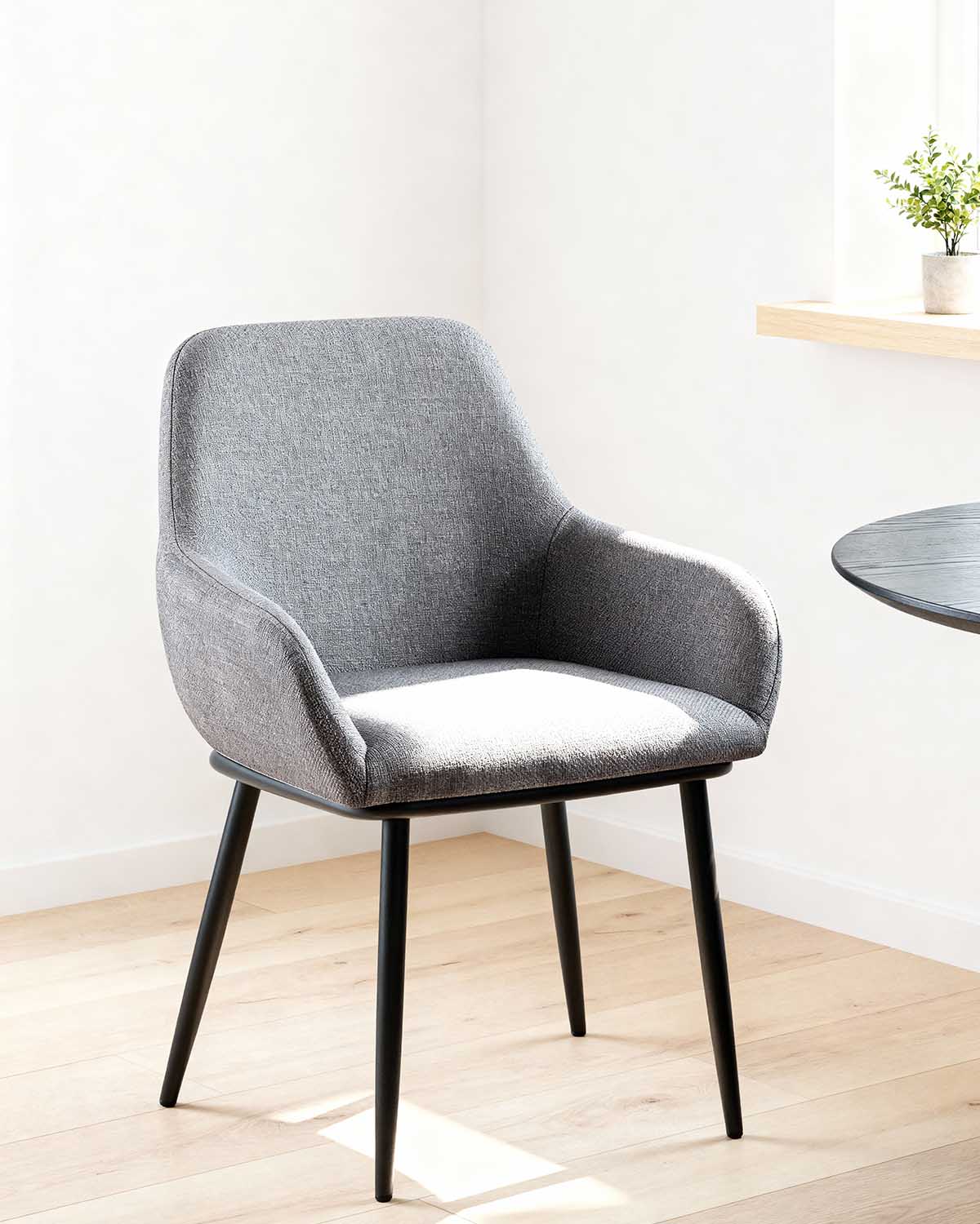 - Silla comedor tapizada en tela Verna Gris combina diseño funcional y estética actual, convirtiéndose en una opción práctica para el comedor o la cocina. El acabado en gris refuerza la sensación de luminosidad y versatilidad en la estancia. Su carácter atemporal permite integrarla en distintos conjuntos de comedor o utilizarla como asiento auxiliar en otras estancias. Pensada para el día a día, combina confort y facilidad de limpieza sin perder presencia decorativa. Fabricada en tela, ofrece resistencia y un mantenimiento sencillo, el asiento ergonómico asegura comodidad durante las comidas, la base en metal garantiza estabilidad y aporta un toque contemporáneo y la estructura soporta hasta 120 kg, lo que la convierte en una pieza duradera. Un diseño versátil que se integra en ambientes modernos, nórdicos o minimalistas, ideal para completar el espacio con estilo y practicidad.