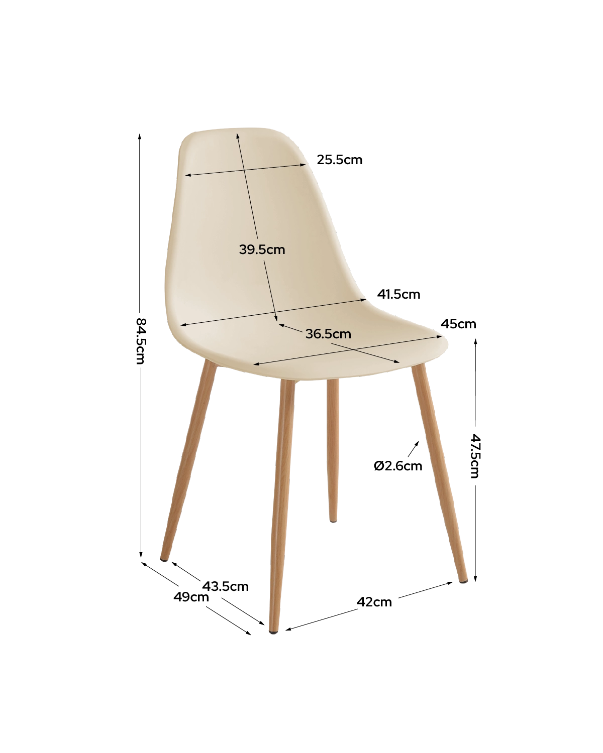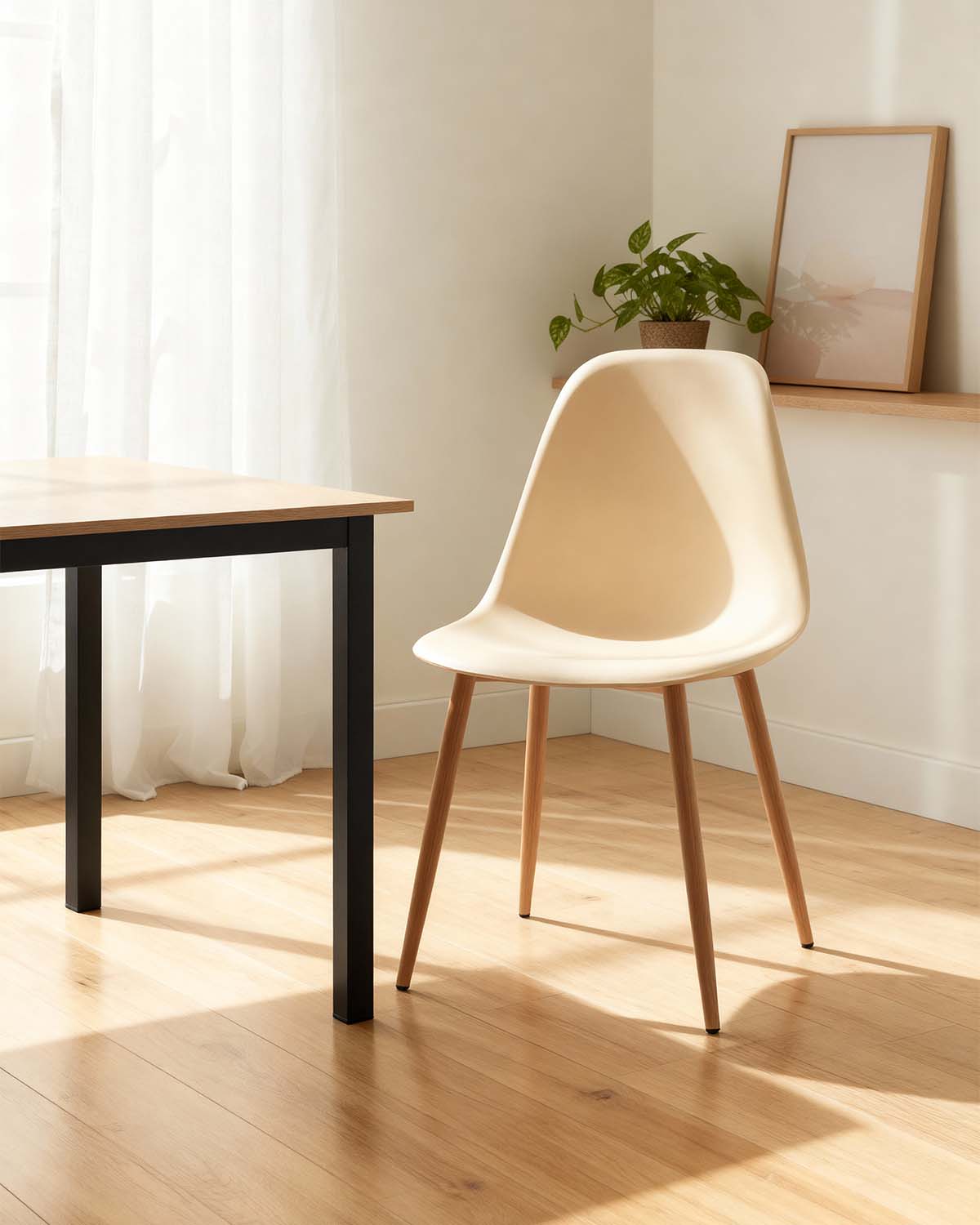- Silla comedor en poliorpileno y metal Lena Beige combina diseño funcional y estética actual, convirtiéndose en una opción práctica para el comedor o la cocina. El acabado en beige refuerza la sensación de luminosidad y versatilidad en la estancia. Su carácter atemporal permite integrarla en distintos conjuntos de comedor o utilizarla como asiento auxiliar en otras estancias. Pensada para el día a día, combina confort y facilidad de limpieza sin perder presencia decorativa. Fabricada en polipropileno, ofrece resistencia y un mantenimiento sencillo, el asiento ergonómico asegura comodidad durante las comidas, la base en metal garantiza estabilidad y aporta un toque contemporáneo y la estructura soporta hasta 120 kg, lo que la convierte en una pieza duradera. Un diseño versátil que se integra en ambientes modernos, nórdicos o minimalistas, ideal para completar el espacio con estilo y practicidad.