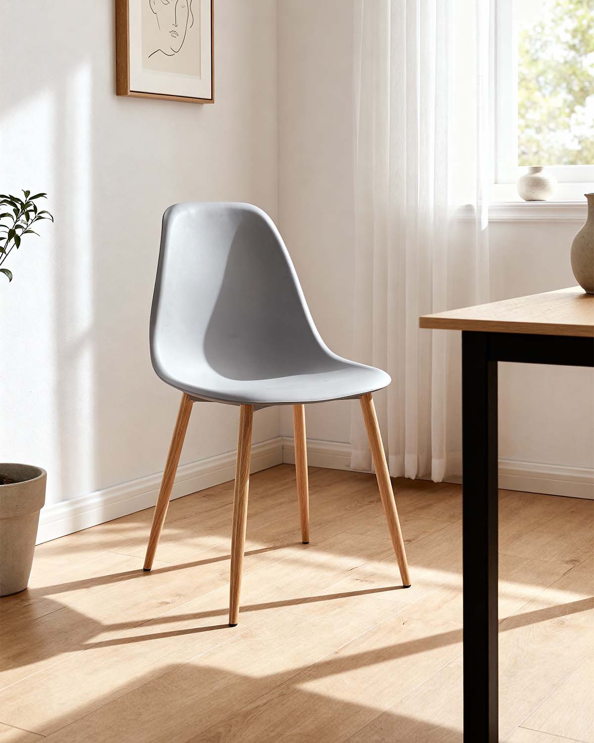 - Silla comedor en poliorpileno y metal Lena Gris combina diseño funcional y estética actual, convirtiéndose en una opción práctica para el comedor o la cocina. El acabado en gris refuerza la sensación de luminosidad y versatilidad en la estancia. Su carácter atemporal permite integrarla en distintos conjuntos de comedor o utilizarla como asiento auxiliar en otras estancias. Pensada para el día a día, combina confort y facilidad de limpieza sin perder presencia decorativa. Fabricada en polipropileno, ofrece resistencia y un mantenimiento sencillo, el asiento ergonómico asegura comodidad durante las comidas, la base en metal garantiza estabilidad y aporta un toque contemporáneo y la estructura soporta hasta 120 kg, lo que la convierte en una pieza duradera. Un diseño versátil que se integra en ambientes modernos, nórdicos o minimalistas, ideal para completar el espacio con estilo y practicidad.