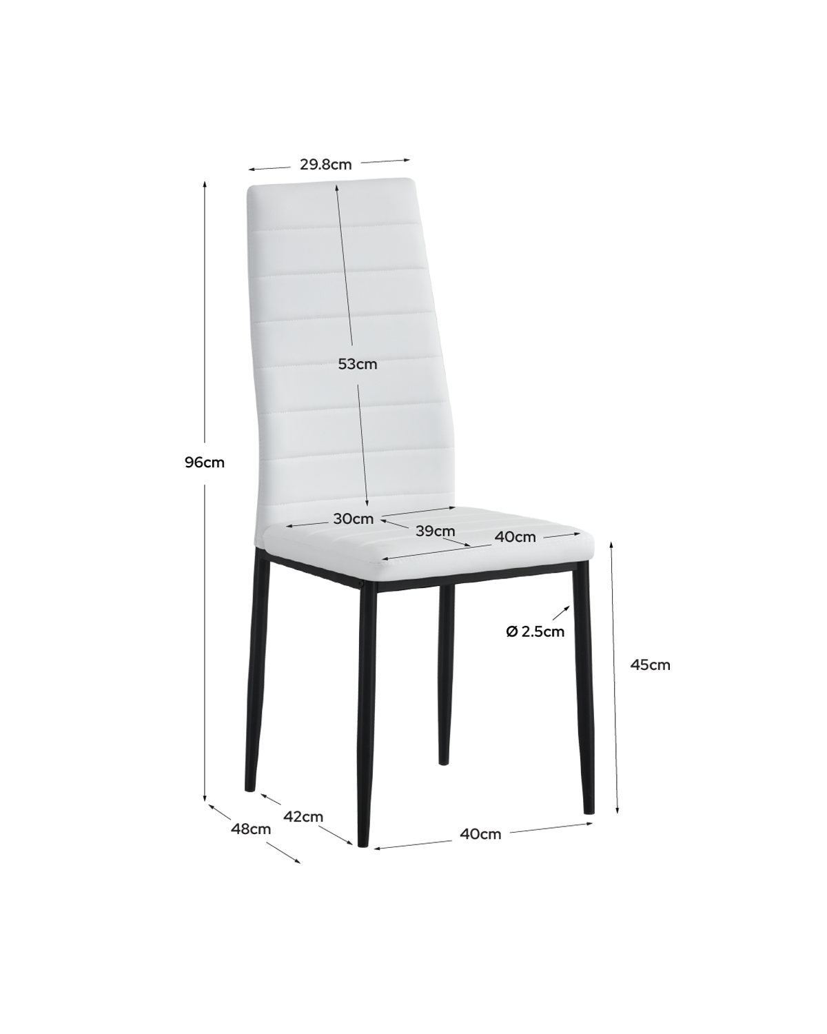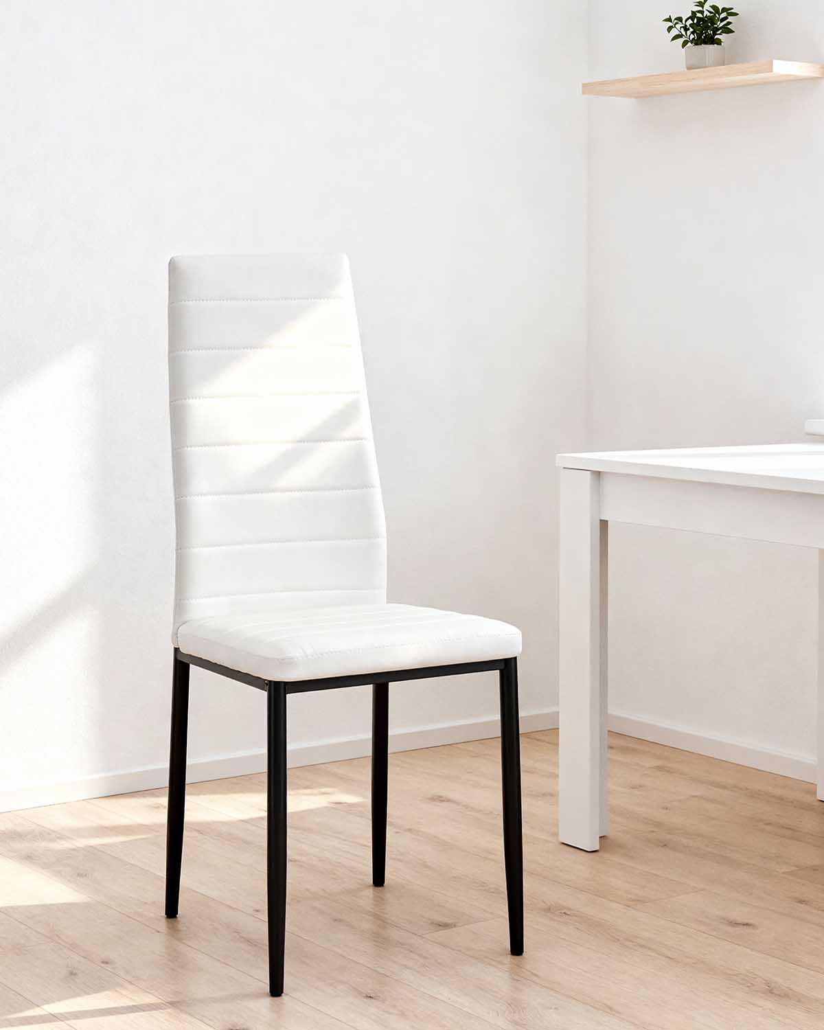 - Silla comedor tapizada en polipiel Corina Blanco combina diseño funcional y estética actual, convirtiéndose en una opción práctica para el comedor o la cocina. El acabado en blanco refuerza la sensación de luminosidad y versatilidad en la estancia. Su carácter atemporal permite integrarla en distintos conjuntos de comedor o utilizarla como asiento auxiliar en otras estancias. Pensada para el día a día, combina confort y facilidad de limpieza sin perder presencia decorativa. Fabricada en polipiel, ofrece resistencia y un mantenimiento sencillo, el asiento ergonómico asegura comodidad durante las comidas, la base en metal garantiza estabilidad y aporta un toque contemporáneo y la estructura soporta hasta 120 kg, lo que la convierte en una pieza duradera. Un diseño versátil que se integra en ambientes modernos, nórdicos o minimalistas, ideal para completar el espacio con estilo y practicidad.