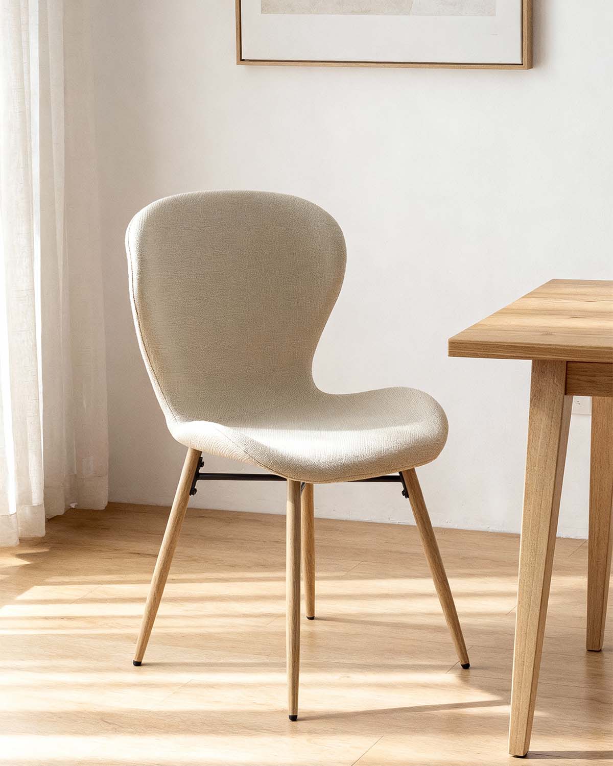 - Silla comedor tapizada en tela Helene Beige combina diseño funcional y estética actual, convirtiéndose en una opción práctica para el comedor o la cocina. El acabado en beige refuerza la sensación de luminosidad y versatilidad en la estancia. Su carácter atemporal permite integrarla en distintos conjuntos de comedor o utilizarla como asiento auxiliar en otras estancias. Pensada para el día a día, combina confort y facilidad de limpieza sin perder presencia decorativa. Fabricada en tela, ofrece resistencia y un mantenimiento sencillo, el asiento ergonómico asegura comodidad durante las comidas, la base en metal garantiza estabilidad y aporta un toque contemporáneo y la estructura soporta hasta 120 kg, lo que la convierte en una pieza duradera. Un diseño versátil que se integra en ambientes modernos, nórdicos o minimalistas, ideal para completar el espacio con estilo y practicidad.