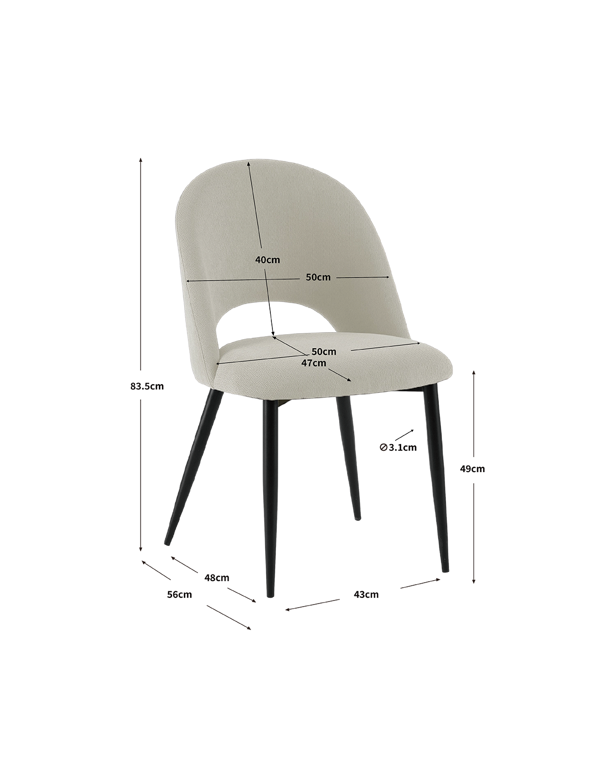 - Silla comedor tapizada en tela Hollie Beige combina diseño funcional y estética actual, convirtiéndose en una opción práctica para el comedor o la cocina. El acabado en beige refuerza la sensación de luminosidad y versatilidad en la estancia. Su carácter atemporal permite integrarla en distintos conjuntos de comedor o utilizarla como asiento auxiliar en otras estancias. Pensada para el día a día, combina confort y facilidad de limpieza sin perder presencia decorativa. Fabricada en tela, ofrece resistencia y un mantenimiento sencillo, el asiento ergonómico asegura comodidad durante las comidas, la base en metal garantiza estabilidad y aporta un toque contemporáneo y la estructura soporta hasta 120 kg, lo que la convierte en una pieza duradera. Un diseño versátil que se integra en ambientes modernos, nórdicos o minimalistas, ideal para completar el espacio con estilo y practicidad.