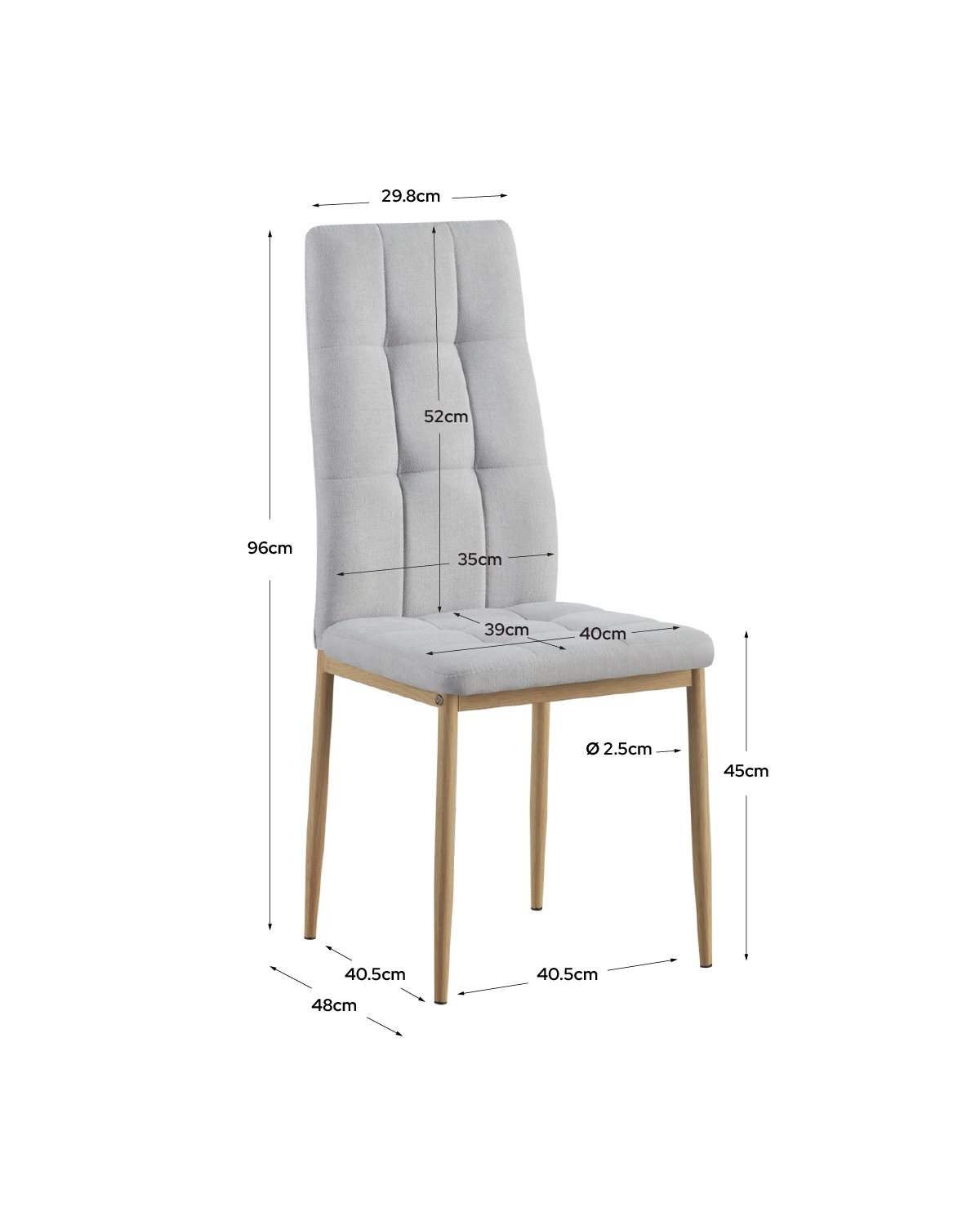- Profundidad asiento: 39 cm