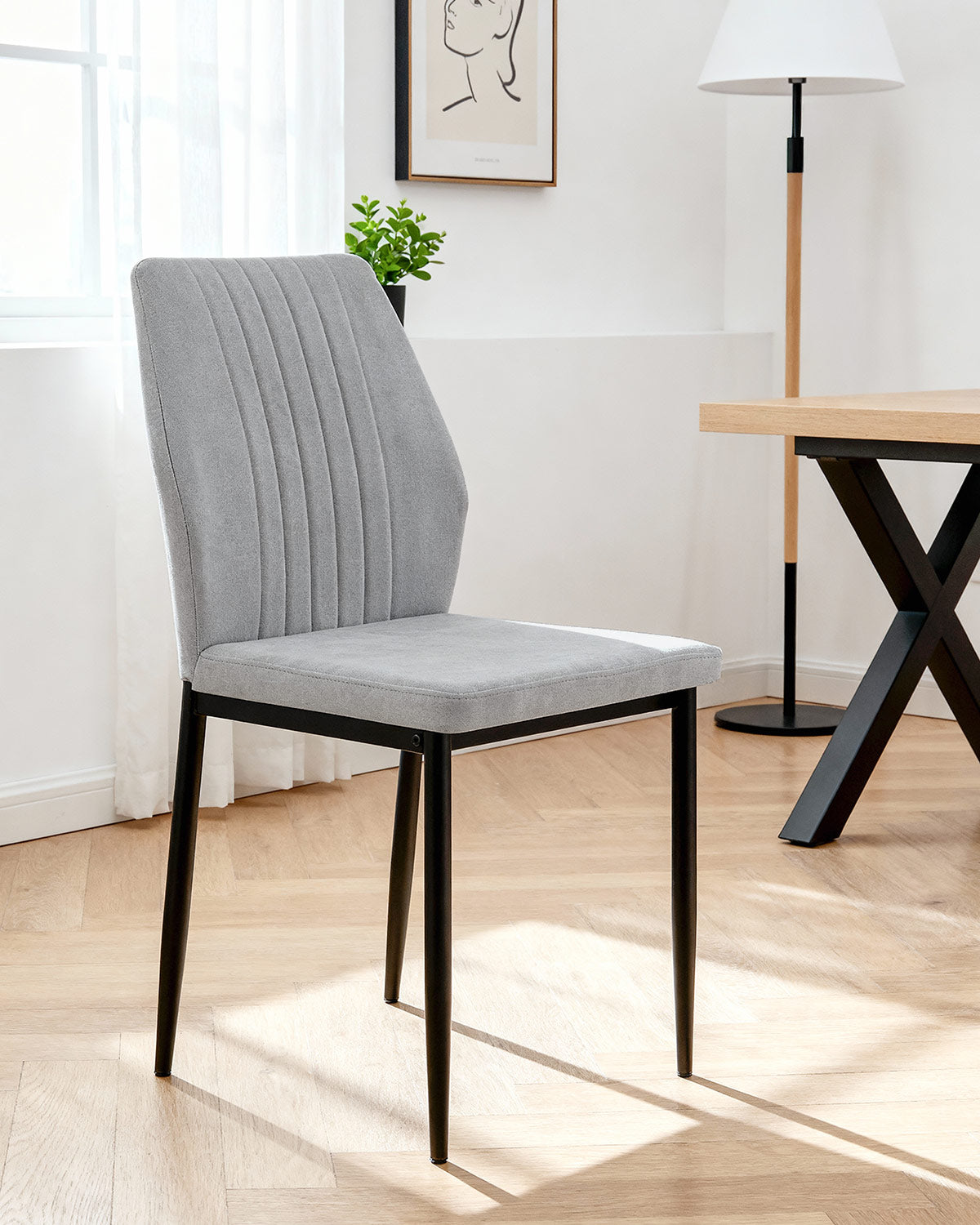 - Silla comedor tapizada en tela Manuela Gris oscuro combina diseño funcional y estética actual, convirtiéndose en una opción práctica para el comedor o la cocina. El acabado en gris oscuro refuerza la sensación de luminosidad y versatilidad en la estancia. Su carácter atemporal permite integrarla en distintos conjuntos de comedor o utilizarla como asiento auxiliar en otras estancias. Pensada para el día a día, combina confort y facilidad de limpieza sin perder presencia decorativa. Fabricada en tela, ofrece resistencia y un mantenimiento sencillo, el asiento ergonómico asegura comodidad durante las comidas, la base en metal garantiza estabilidad y aporta un toque contemporáneo y la estructura soporta hasta 120 kg, lo que la convierte en una pieza duradera. Un diseño versátil que se integra en ambientes modernos, nórdicos o minimalistas, ideal para completar el espacio con estilo y practicidad.