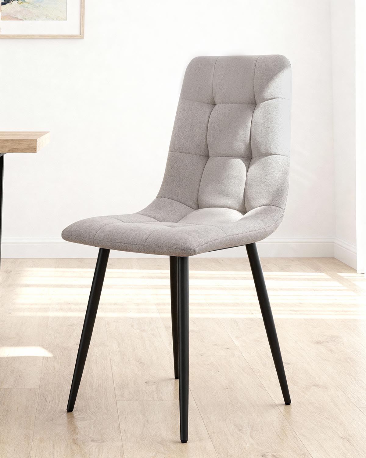 - Silla comedor tapizada en tela Shanna Gris claro combina diseño funcional y estética actual, convirtiéndose en una opción práctica para el comedor o la cocina. El acabado en gris claro refuerza la sensación de luminosidad y versatilidad en la estancia. Su carácter atemporal permite integrarla en distintos conjuntos de comedor o utilizarla como asiento auxiliar en otras estancias. Pensada para el día a día, combina confort y facilidad de limpieza sin perder presencia decorativa. Fabricada en tela, ofrece resistencia y un mantenimiento sencillo, el asiento ergonómico asegura comodidad durante las comidas, la base en metal garantiza estabilidad y aporta un toque contemporáneo y la estructura soporta hasta 135 kg, lo que la convierte en una pieza duradera. Un diseño versátil que se integra en ambientes modernos, nórdicos o minimalistas, ideal para completar el espacio con estilo y practicidad.