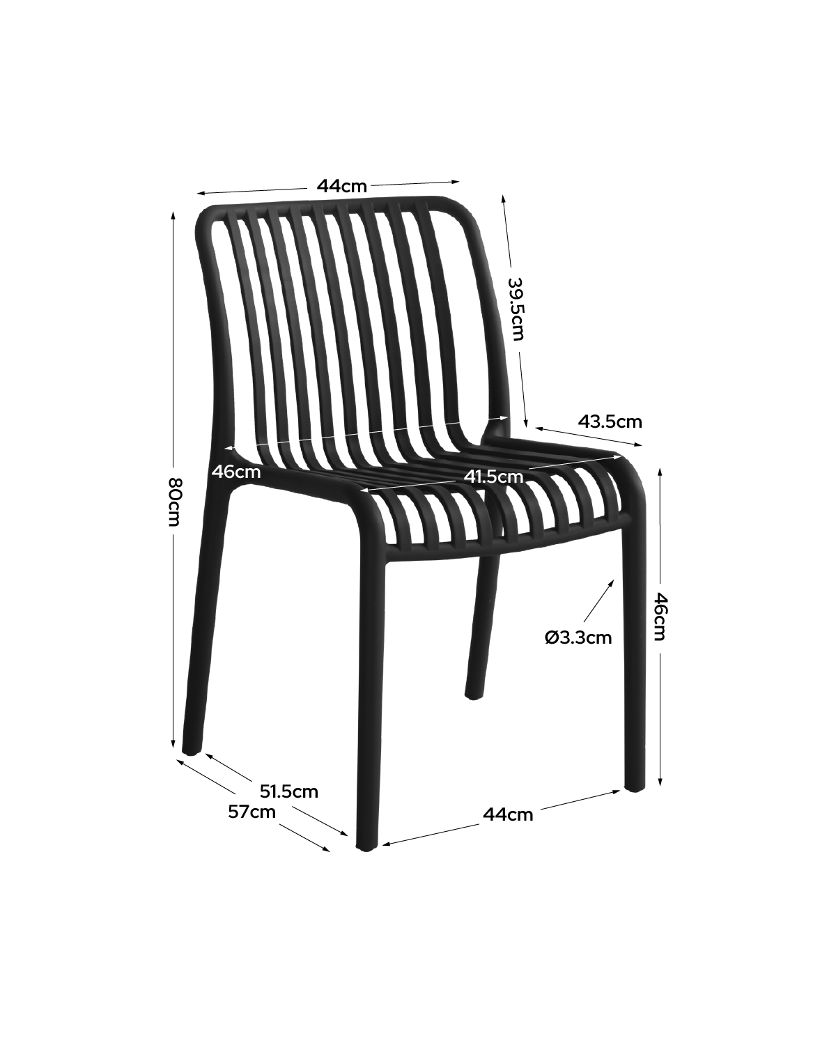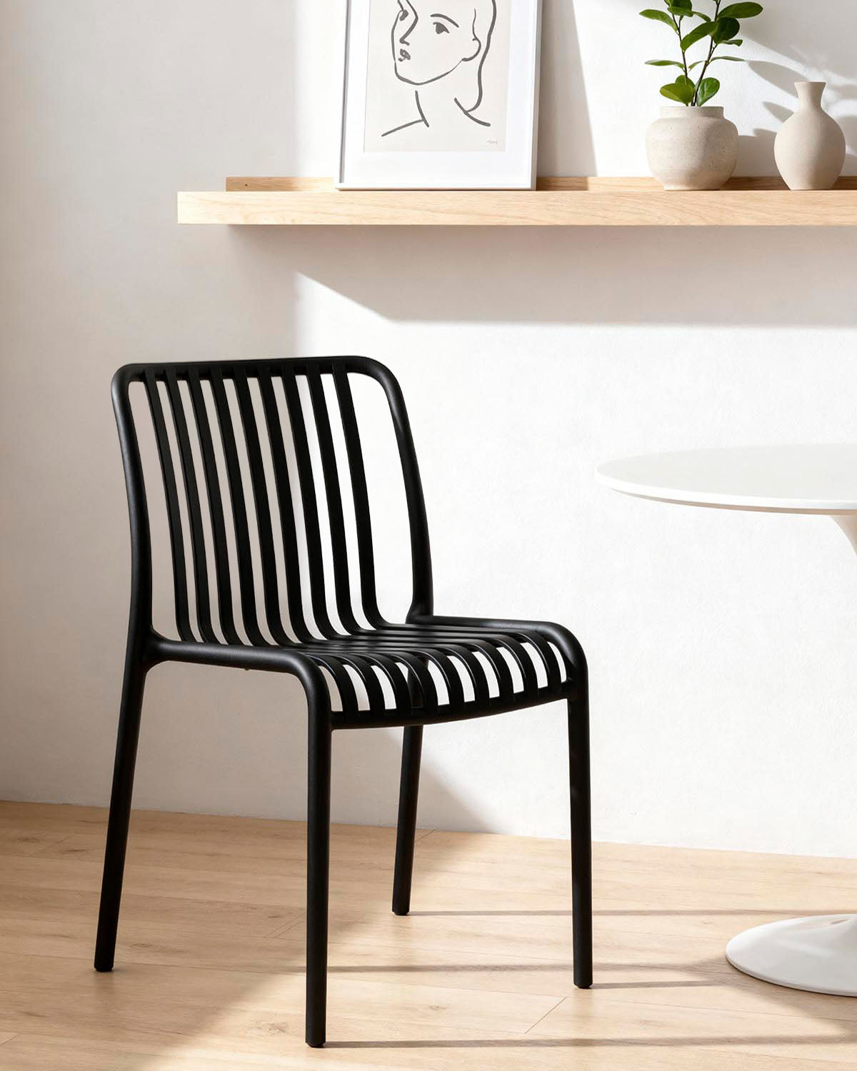 - Silla comedor en polipropileno Delia Negro combina diseño funcional y estética actual, convirtiéndose en una opción práctica para el comedor o la cocina. El acabado en negro refuerza la sensación de luminosidad y versatilidad en la estancia. Su carácter atemporal permite integrarla en distintos conjuntos de comedor o utilizarla como asiento auxiliar en otras estancias. Pensada para el día a día, combina confort y facilidad de limpieza sin perder presencia decorativa. Fabricada en polipropileno tratado para exterior, ofrece resistencia y un mantenimiento sencillo, el asiento ergonómico asegura comodidad durante las comidas y la estructura soporta hasta 120 kg, lo que la convierte en una pieza duradera. Un diseño versátil que se integra en ambientes modernos, nórdicos o minimalistas, ideal para completar el espacio con estilo y practicidad.