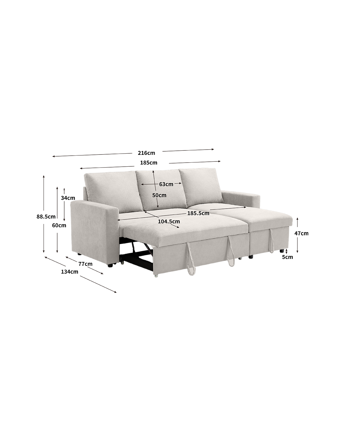 - Medidas sofá-cama abierto: 185 x 104,5 x 47 cm