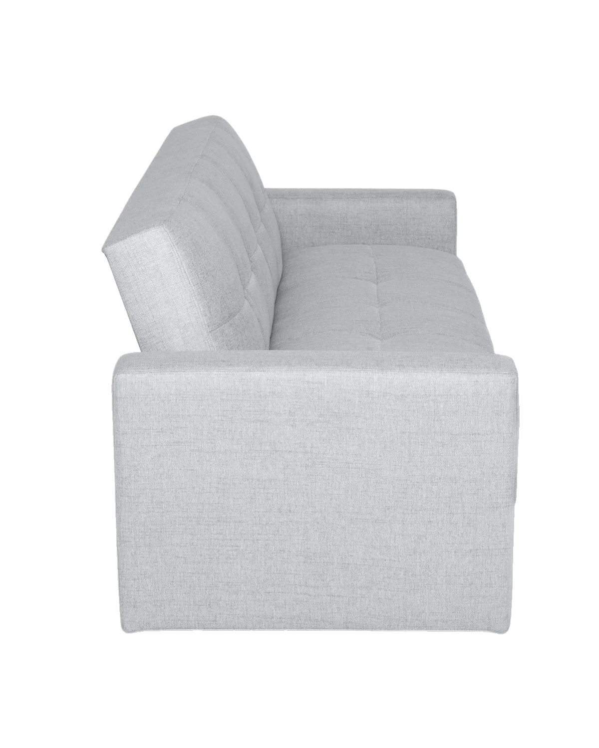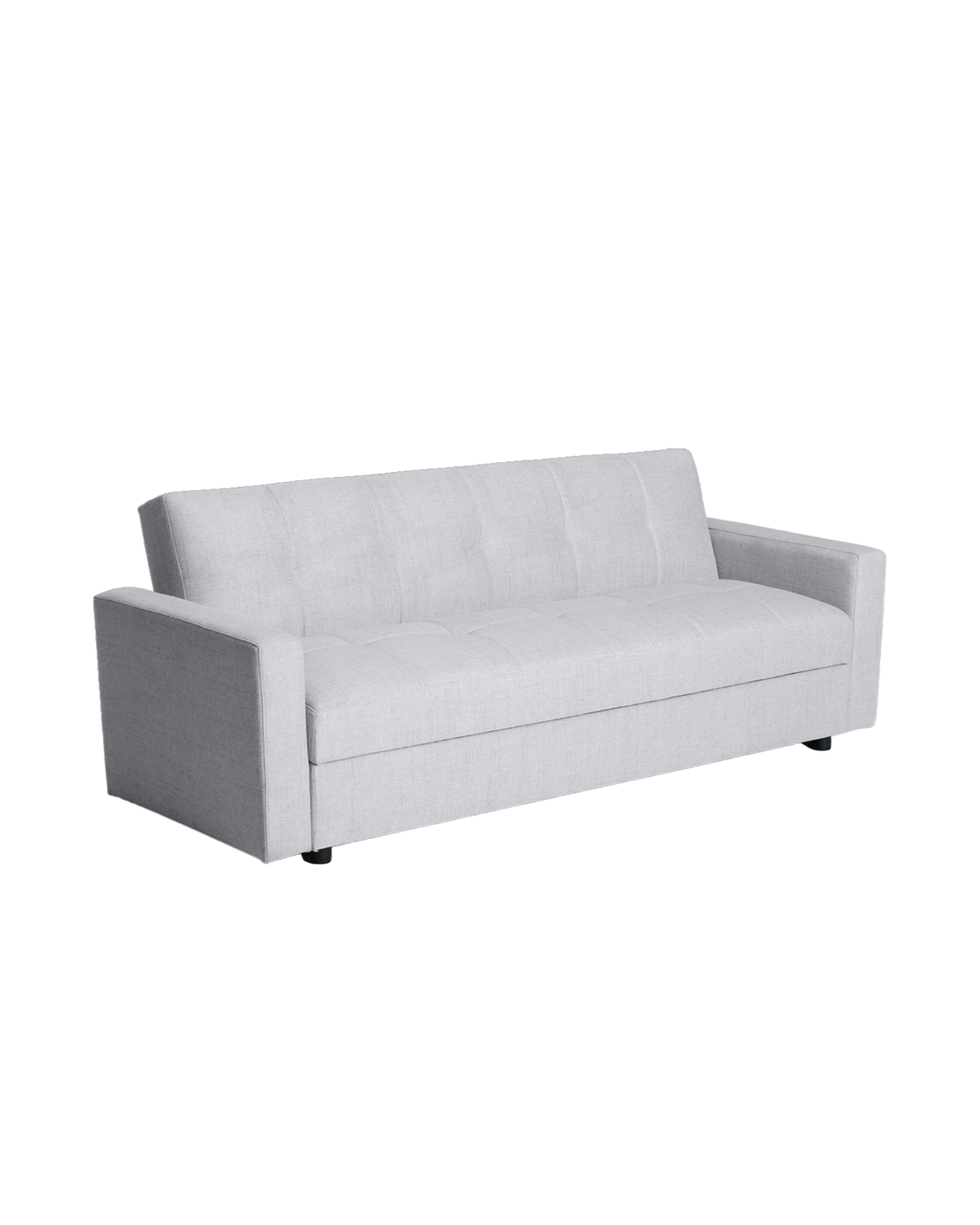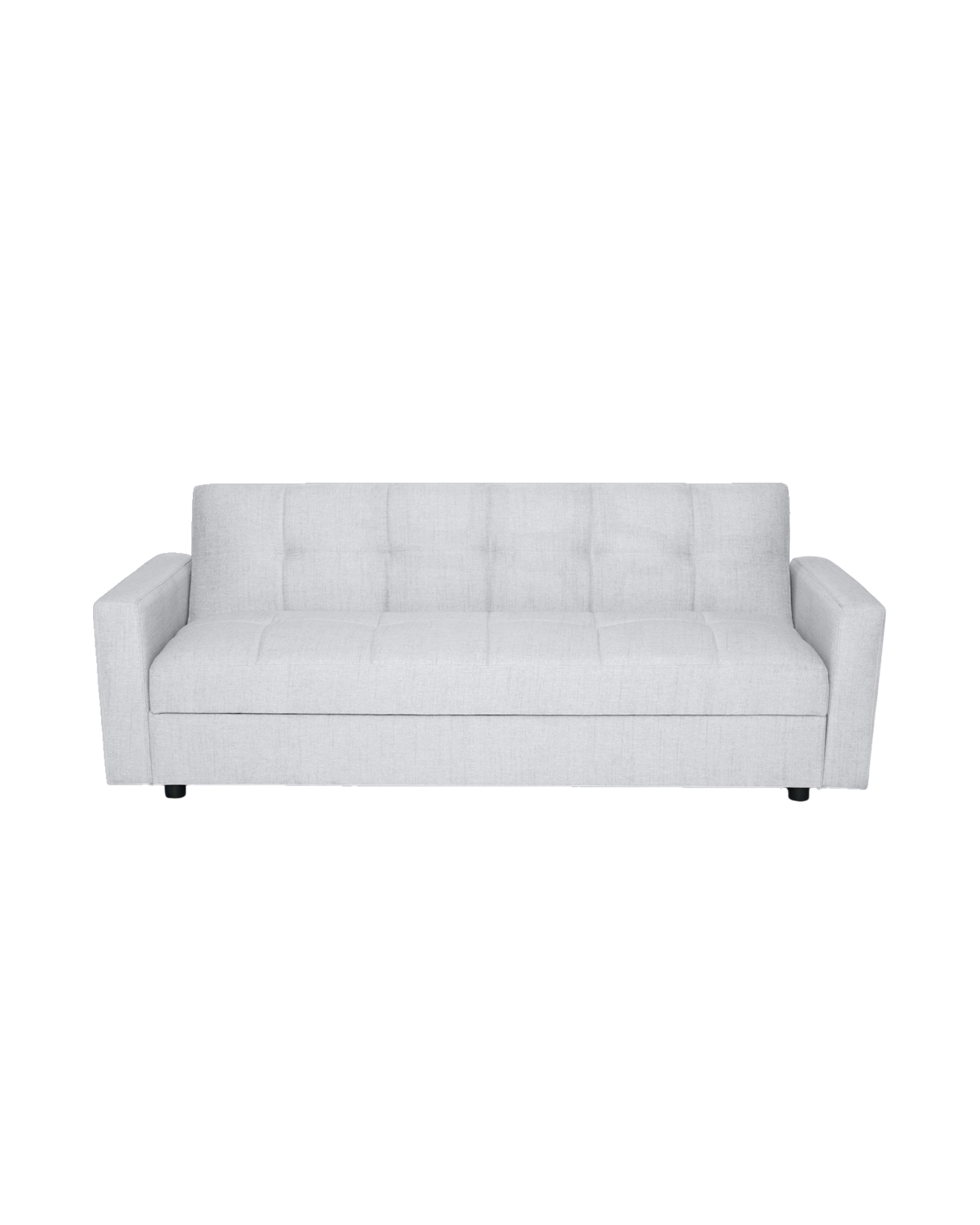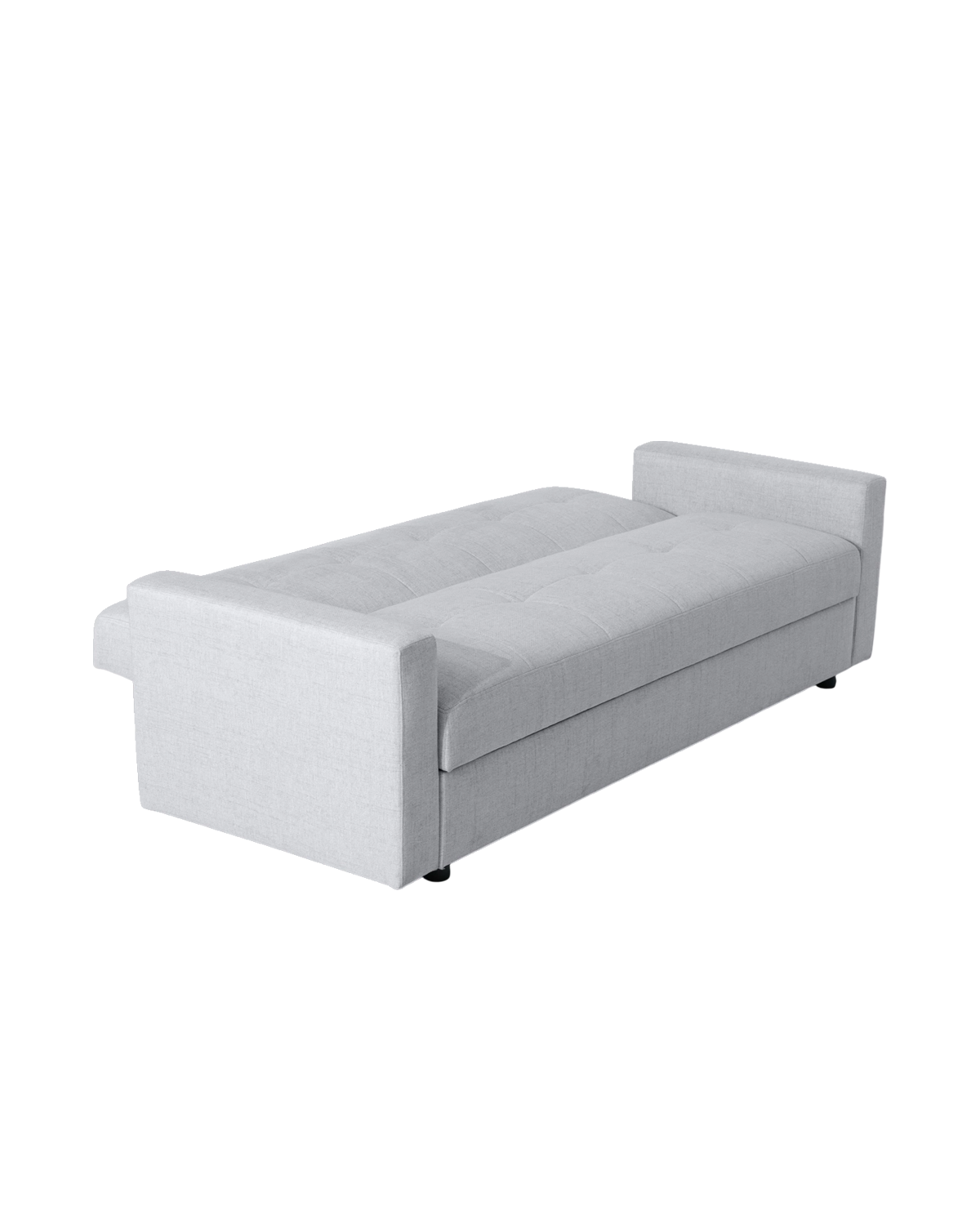 - Sofá cama con 3 plazas y almacenaje Kim Gris es una pieza práctica que une funcionalidad y estilo, pensada para optimizar espacios reducidos sin renunciar a la comodidad. El acabado en gris aporta frescura y versatilidad, ideal para distintos estilos de decoración. Su diseño atemporal permite integrarlo en ambientes modernos, nórdicos o clásicos, aportando confort en el uso diario. Tapizado en poliéster, ofrece una textura suave y fácil de mantener, su formato de 3 plaza lo convierte en una solución compacta para hogares modernos, el sistema clic-clac permite un uso sencillo y práctico y las patas de plástico aportan estabilidad y un toque natural. Un sofá cama versátil que funciona como asiento de día y cama auxiliar de noche, perfecto para salones pequeños, dormitorios juveniles o espacios multifuncionales.