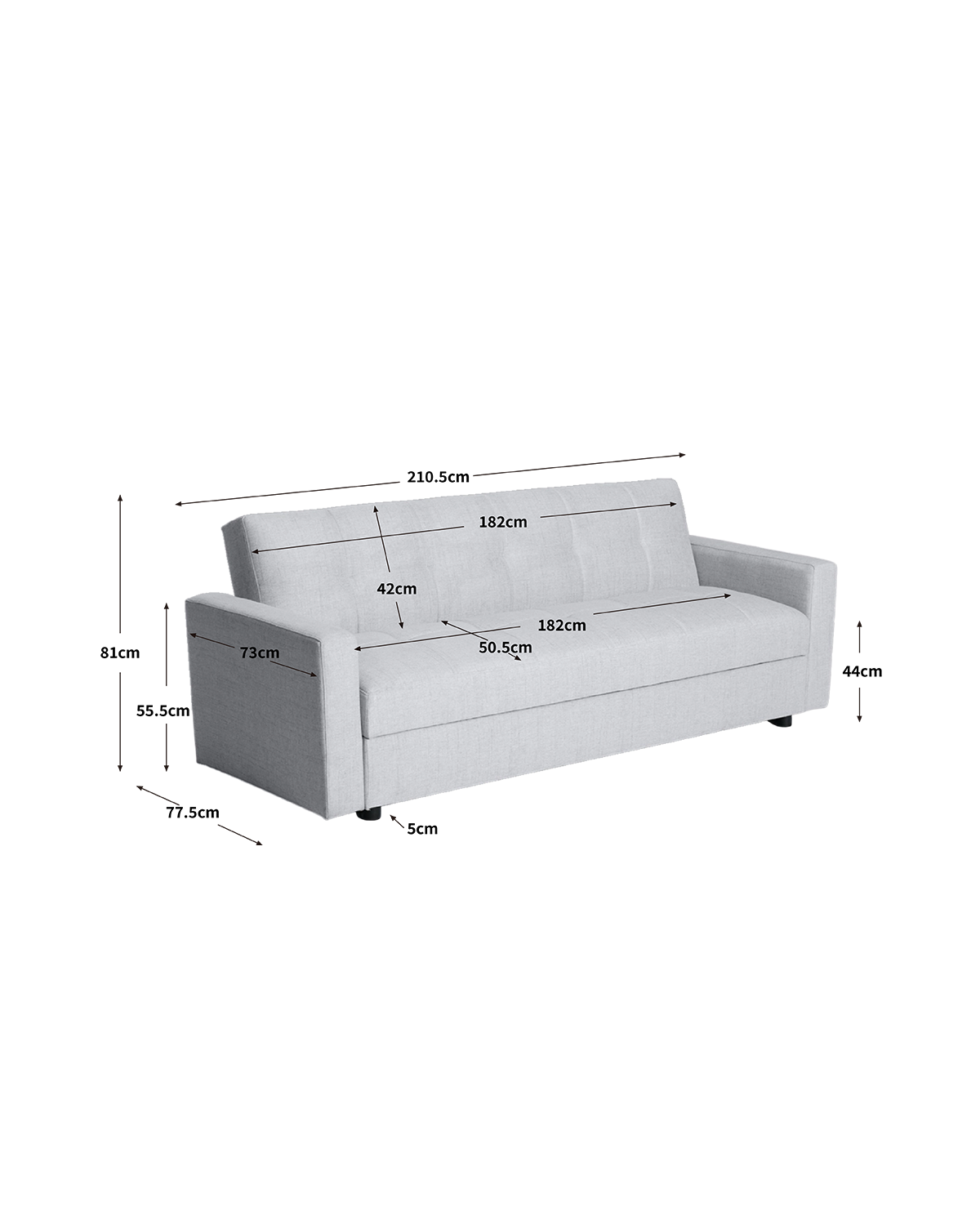 - Medidas sofá-cama abierto: 182 x 101 x 44 cm