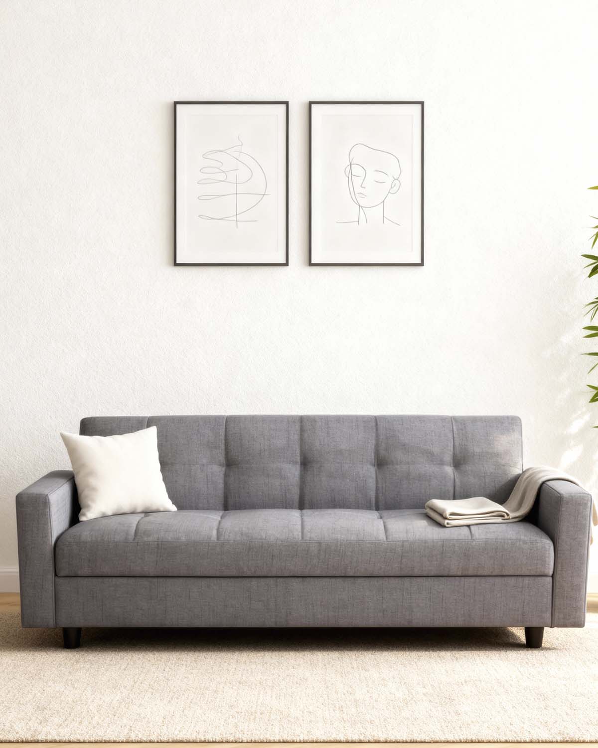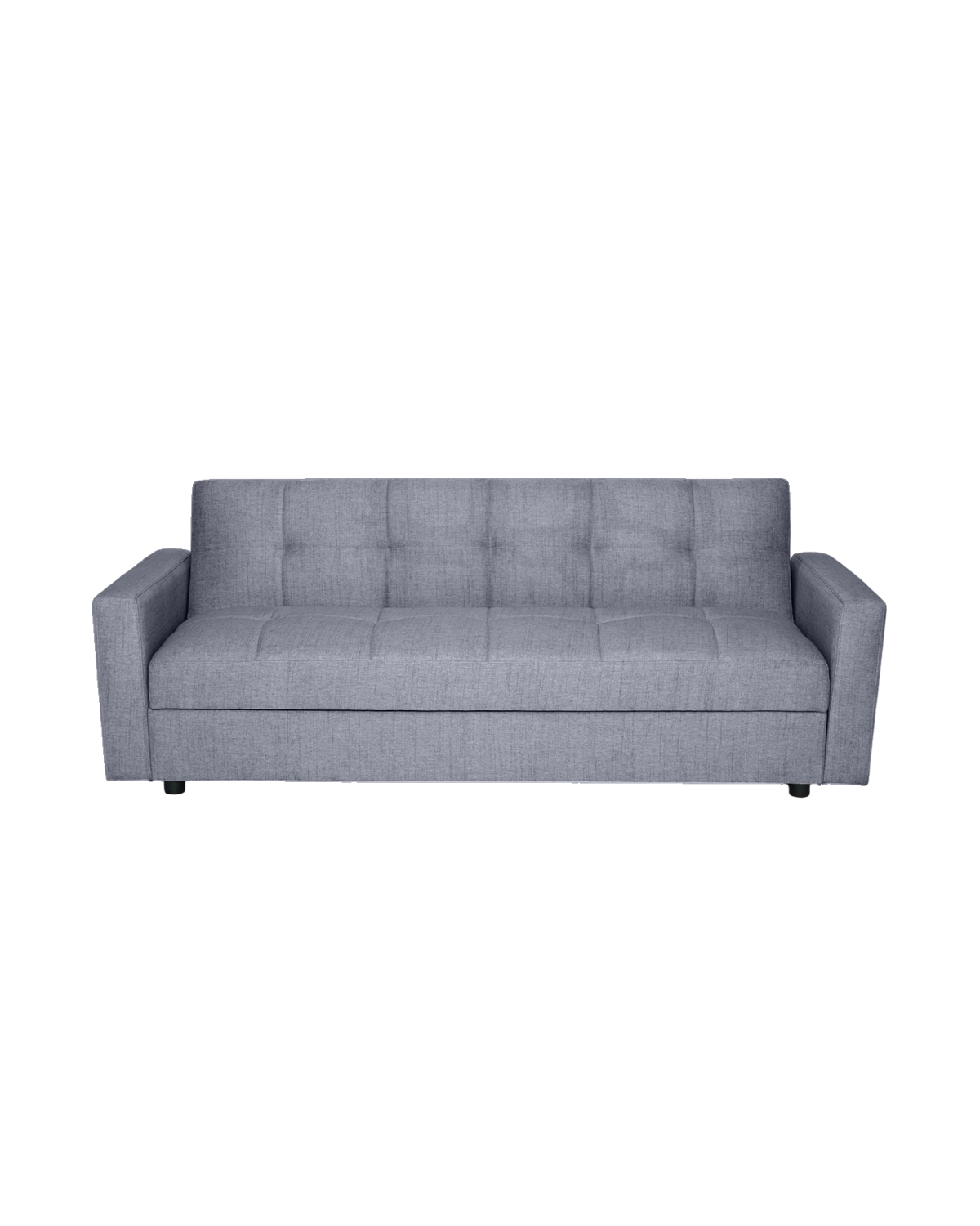- Sofá cama con 3 plazas y almacenaje Kim Gris oscuro es una pieza práctica que une funcionalidad y estilo, pensada para optimizar espacios reducidos sin renunciar a la comodidad. El acabado en gris oscuro aporta frescura y versatilidad, ideal para distintos estilos de decoración. Su diseño atemporal permite integrarlo en ambientes modernos, nórdicos o clásicos, aportando confort en el uso diario. Tapizado en poliéster, ofrece una textura suave y fácil de mantener, su formato de 3 plaza lo convierte en una solución compacta para hogares modernos, el sistema clic-clac permite un uso sencillo y práctico y las patas de plástico aportan estabilidad y un toque natural. Un sofá cama versátil que funciona como asiento de día y cama auxiliar de noche, perfecto para salones pequeños, dormitorios juveniles o espacios multifuncionales.