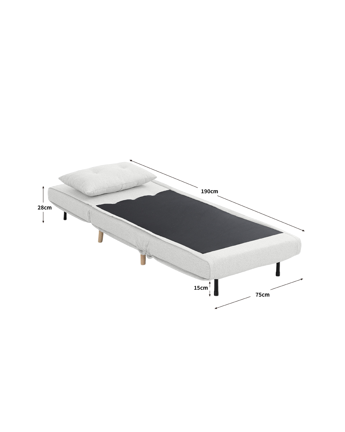 - Medidas sofá-cama abierto: 75 x 190 x 28 cm