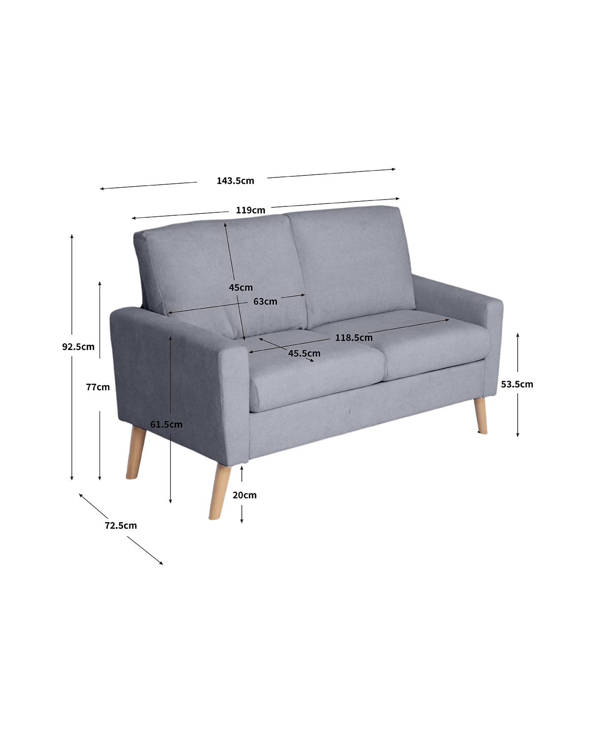 - Sofá de 2 plazas Sophie Beige combina confort y diseño atemporal, pensado para integrarse en diferentes estilos de salón. El acabado en gris aporta calidez y versatilidad, mientras que su formato de 2 plazas lo convierte en el centro de reuniones familiares o de momentos de descanso. Su carácter práctico lo convierte en una pieza imprescindible para el hogar. Tapizado en poliéster, ofrece una superficie agradable al tacto y fácil de mantener, la estructura en tela y madera refuerza la resistencia y la durabilidad, los asientos mullidos proporcionan la comodidad necesaria para el día a día y las patas de madera aseguran estabilidad y un estilo natural. Una propuesta versátil que encaja en ambientes modernos, clásicos o nórdicos, aportando equilibrio estético y funcionalidad a cualquier espacio.