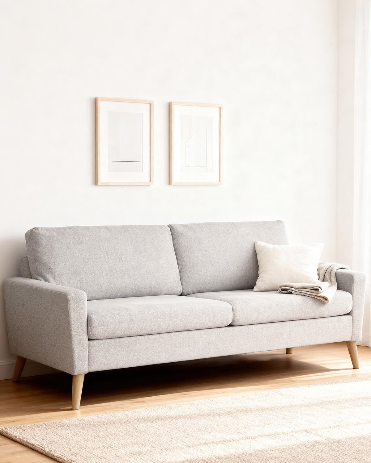 - Sofá de 3 plazas Sophie Beige combina confort y diseño atemporal, pensado para integrarse en diferentes estilos de salón. El acabado en beige aporta calidez y versatilidad, mientras que su formato de 3 plazas lo convierte en el centro de reuniones familiares o de momentos de descanso. Su carácter práctico lo convierte en una pieza imprescindible para el hogar. Tapizado en poliéster, ofrece una superficie agradable al tacto y fácil de mantener, la estructura en tela y madera refuerza la resistencia y la durabilidad, los asientos mullidos proporcionan la comodidad necesaria para el día a día y las patas de madera aseguran estabilidad y un estilo natural. Una propuesta versátil que encaja en ambientes modernos, clásicos o nórdicos, aportando equilibrio estético y funcionalidad a cualquier espacio.