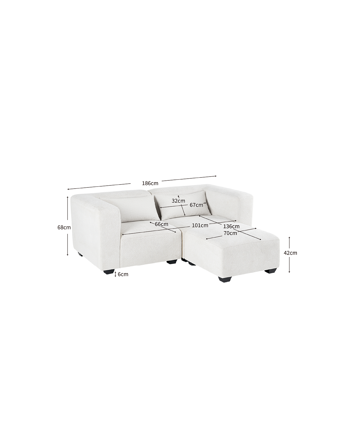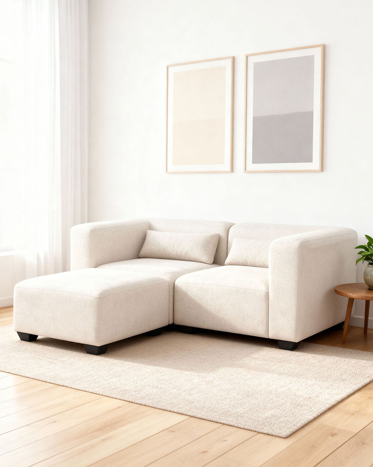 - El sofá modular Liza con reposapiés está formado por tres módulos independientes, que pueden colocarse en distintas posiciones para crear una distribución totalmente personalizada. El módulo de reposapiés puede ubicarse a cualquiera de los lados o usarse por separado, adaptándose a las necesidades de cada estancia. El color beige aporta un aire sereno y luminoso, mientras el diseño de líneas suaves y proporciones amplias refuerza su estilo contemporáneo. Su asiento profundo y respaldo envolvente lo convierten en una opción perfecta para disfrutar del máximo confort en el día a día, ya sea leyendo, viendo una película o descansando. Fabricado en madera y espuma de densidad media, ofrece un equilibrio ideal entre suavidad y firmeza. Las patas discretas de plástico completan su diseño funcional, y su mantenimiento resulta sencillo gracias a la facilidad de limpieza de sus materiales.