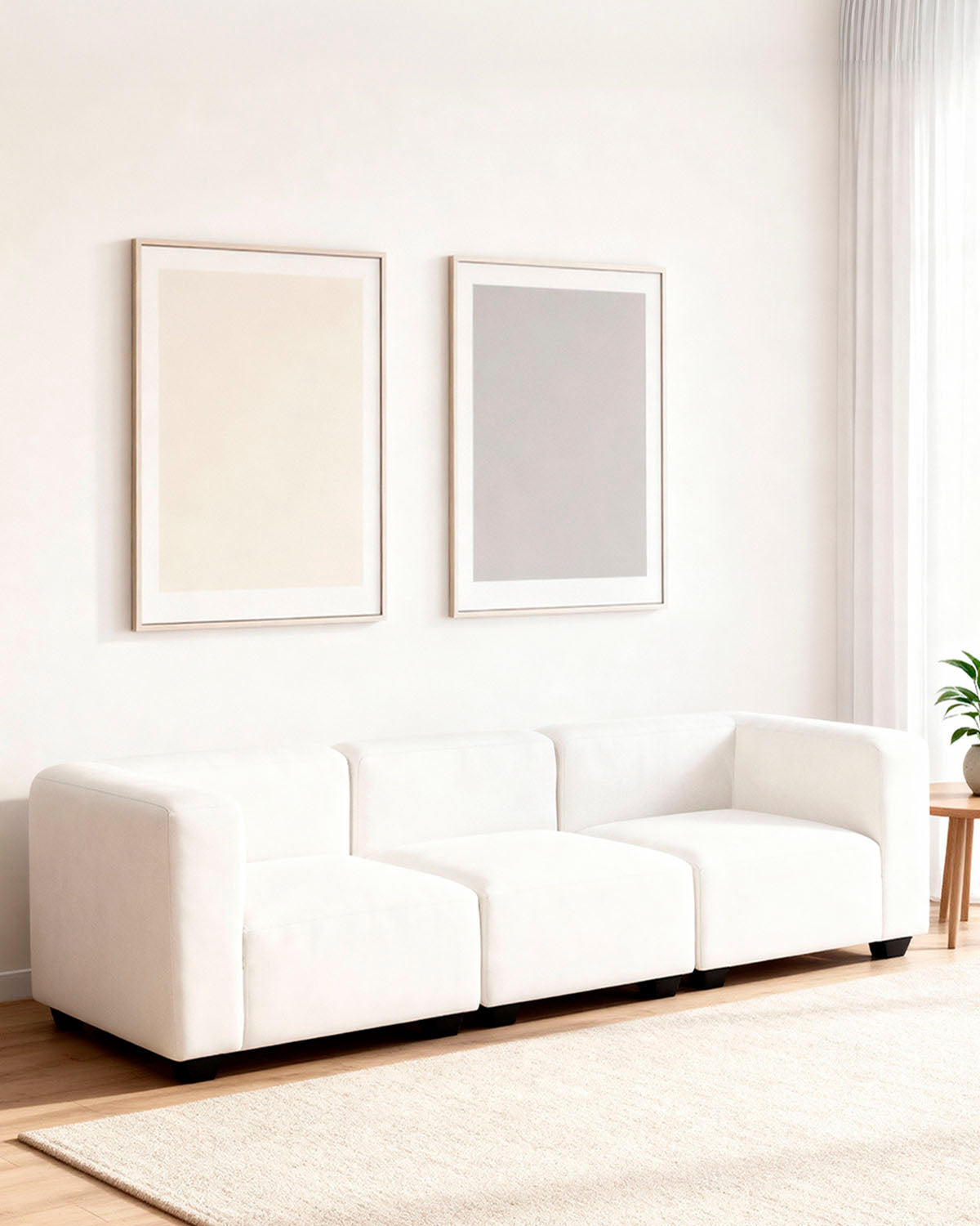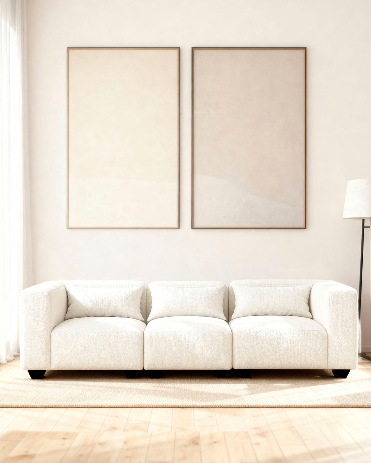- El sofá modular Liza de tres plazas está compuesto por tres módulos independientes, lo que permite configurarlo de múltiples formas según las dimensiones del salón o el estilo del espacio. Su diseño modular ofrece una gran libertad para crear composiciones abiertas, lineales o en forma de rincón, adaptándose fácilmente a distintos ambientes. De estética contemporánea y líneas suaves, este sofá combina proporciones amplias con una altura de asiento cómoda y baja que invita al descanso. Su acabado en color beige aporta calidez y luminosidad, integrándose con naturalidad en decoraciones neutras o ambientes de estilo nórdico. Los reposabrazos laterales completan un diseño equilibrado y funcional. La estructura de madera y espuma de densidad media (25 kg/m³) garantiza confort y resistencia al uso diario. Sus patas de plástico aportan estabilidad y un aspecto ligero. De mantenimiento sencillo, basta con limpiar con un paño humedecido y secar de inmediato para conservar su aspecto impecable.