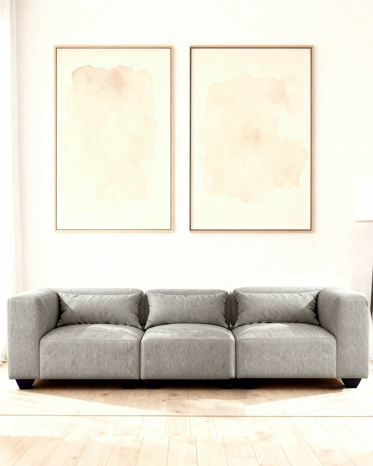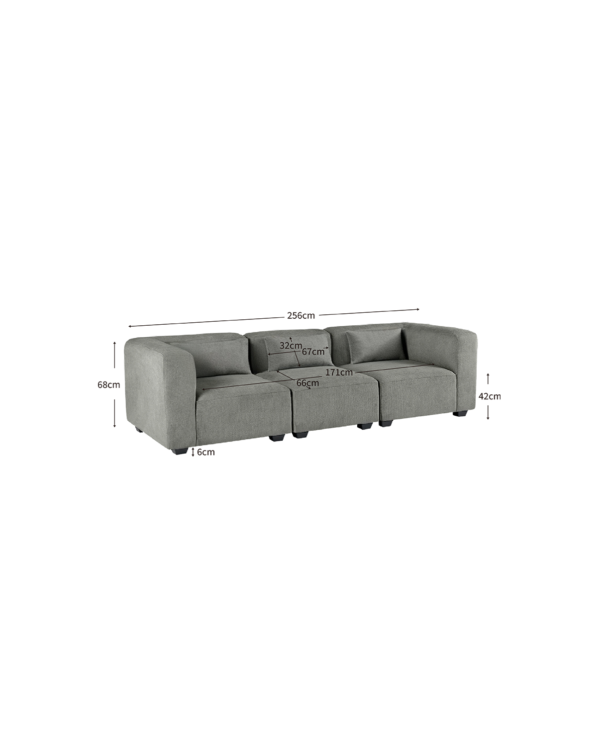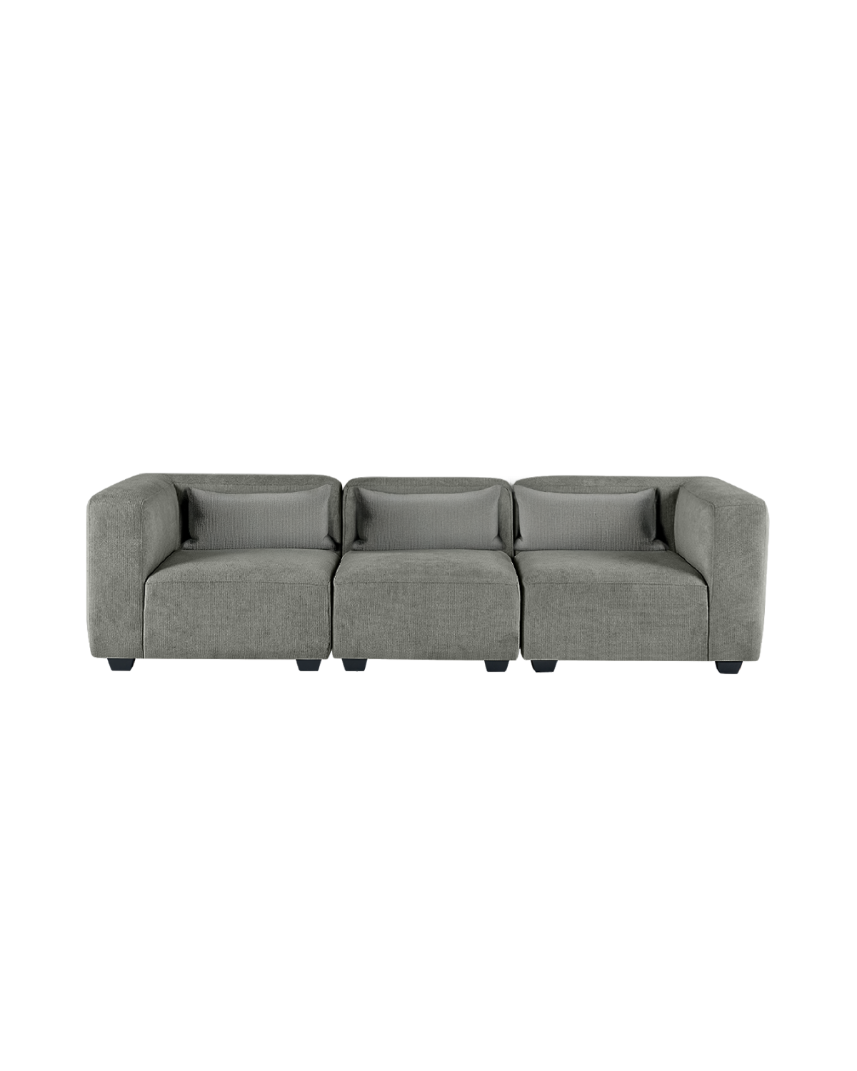 - Diseñado para ofrecer la máxima flexibilidad, el sofá modular Liza verde de tres plazas está formado por tres módulos independientes que pueden disponerse en diferentes configuraciones. Este sistema permite reorganizar fácilmente la disposición del sofá según el espacio o las preferencias del momento. El tono verde aporta un aire fresco y relajante, ideal para crear ambientes acogedores y con personalidad. Su respaldo bajo y sus líneas horizontales contribuyen a una estética moderna, mientras el asiento amplio y firme proporciona una comodidad equilibrada, perfecta para disfrutar del día a día. Con estructura de madera y relleno de espuma de densidad media, ofrece un apoyo cómodo y duradero. Sus patas discretas de plástico completan un diseño funcional y resistente, pensado para combinar estilo y practicidad. Su limpieza es sencilla, solo requiere un paño ligeramente humedecido y secado posterior.